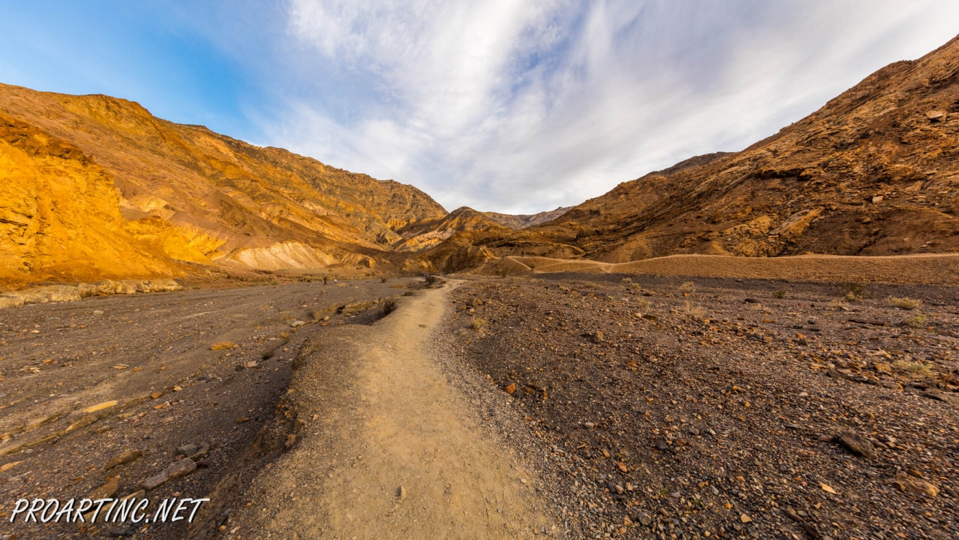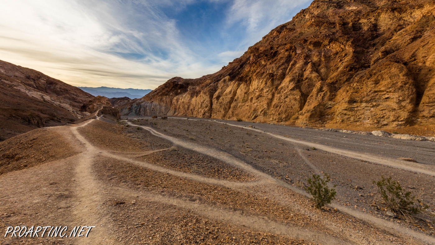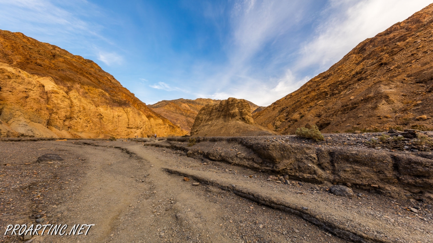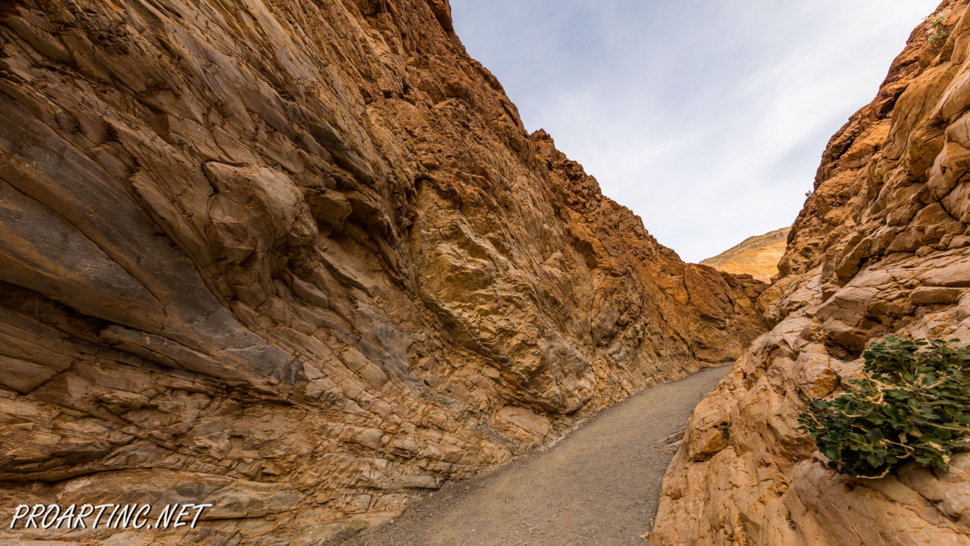 Mosaic Canyon is located close to Stovepipe Wells Village (just ¼ miles west), 2-mile gravel road will take you to a parking lot from where you can start your exploration of the canyon. If you have desire and time to continue hiking, keep walking for another 1.5 miles to a 20-foot dry waterfall.