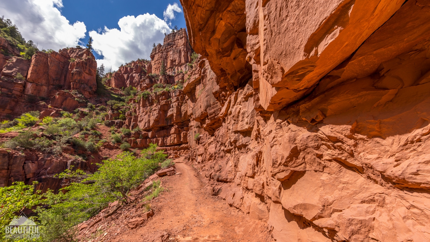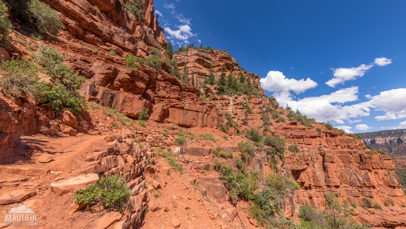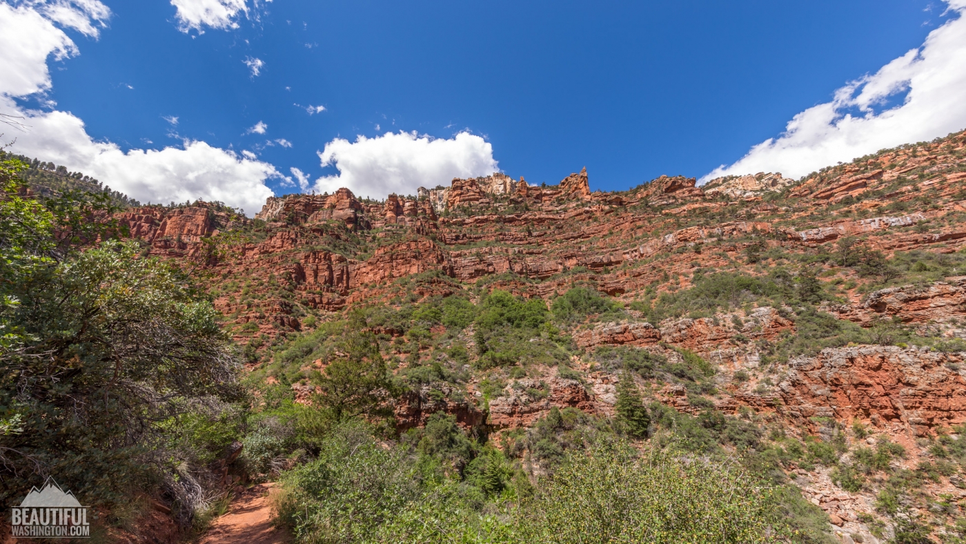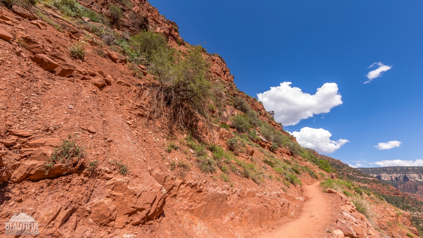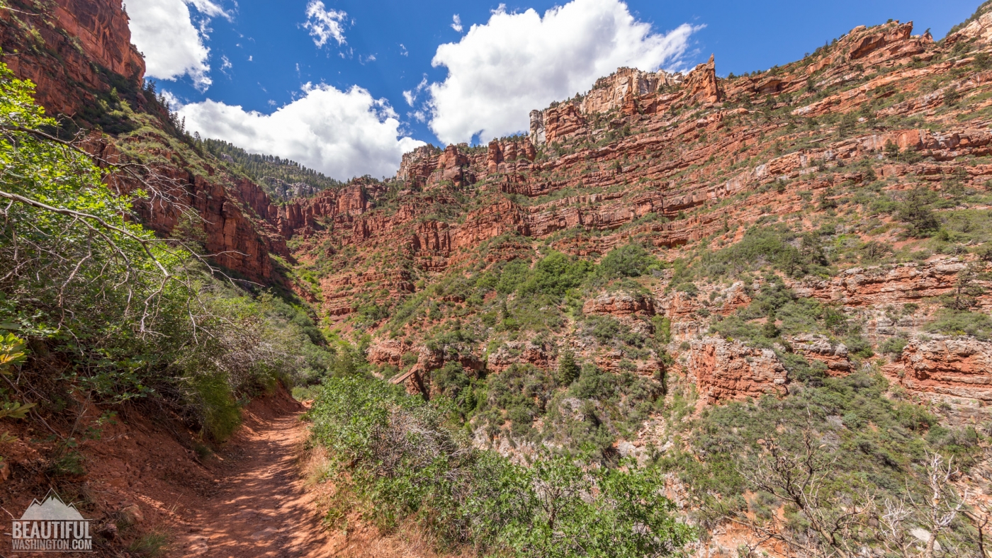At the beginning the trail seams quite easy, running through a forest of aspen and pines, with its trees giving such a pleasant shadow. But very soon it gets very steep. The first stop can be made at Coconino Overlook, which is only 0,7 miles away from the trailhead and which can also become your turnaround point if you came here for an easy day-hike. The views provided by this overlook are just magnificent. You can admire the view of Roaring Springs Canyon here.