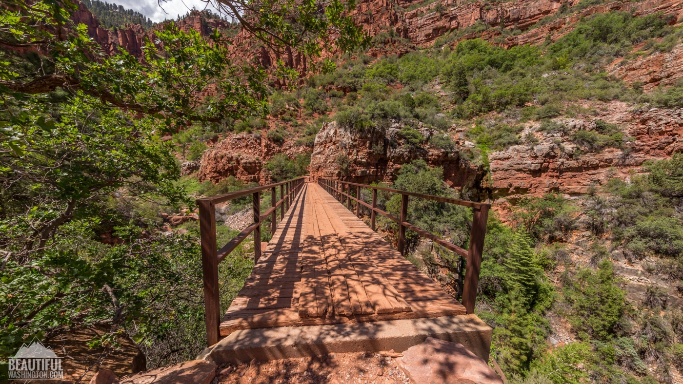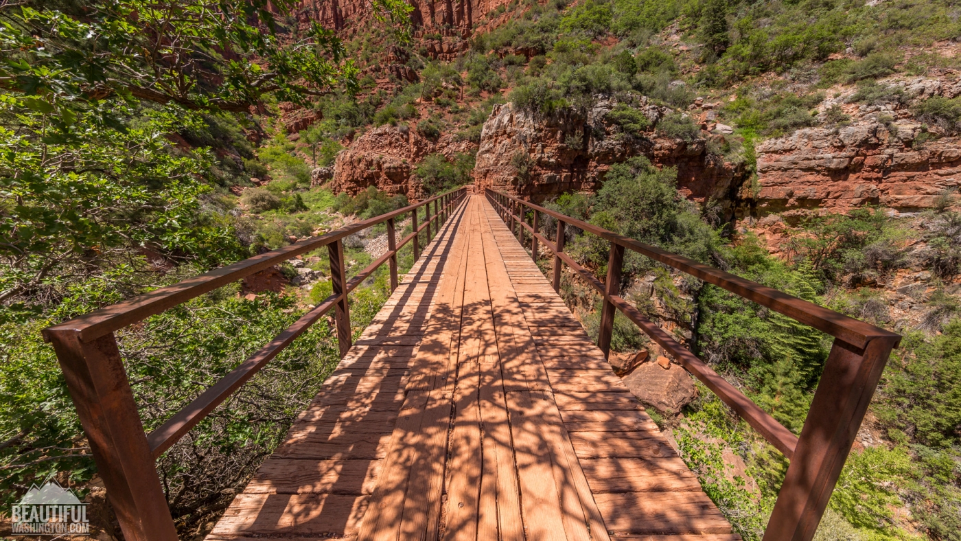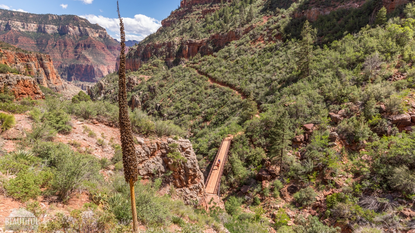 Here, at this place, the North Kaibab Trail is connected with the South Kaibab Trail by a Black Suspension Bridge.