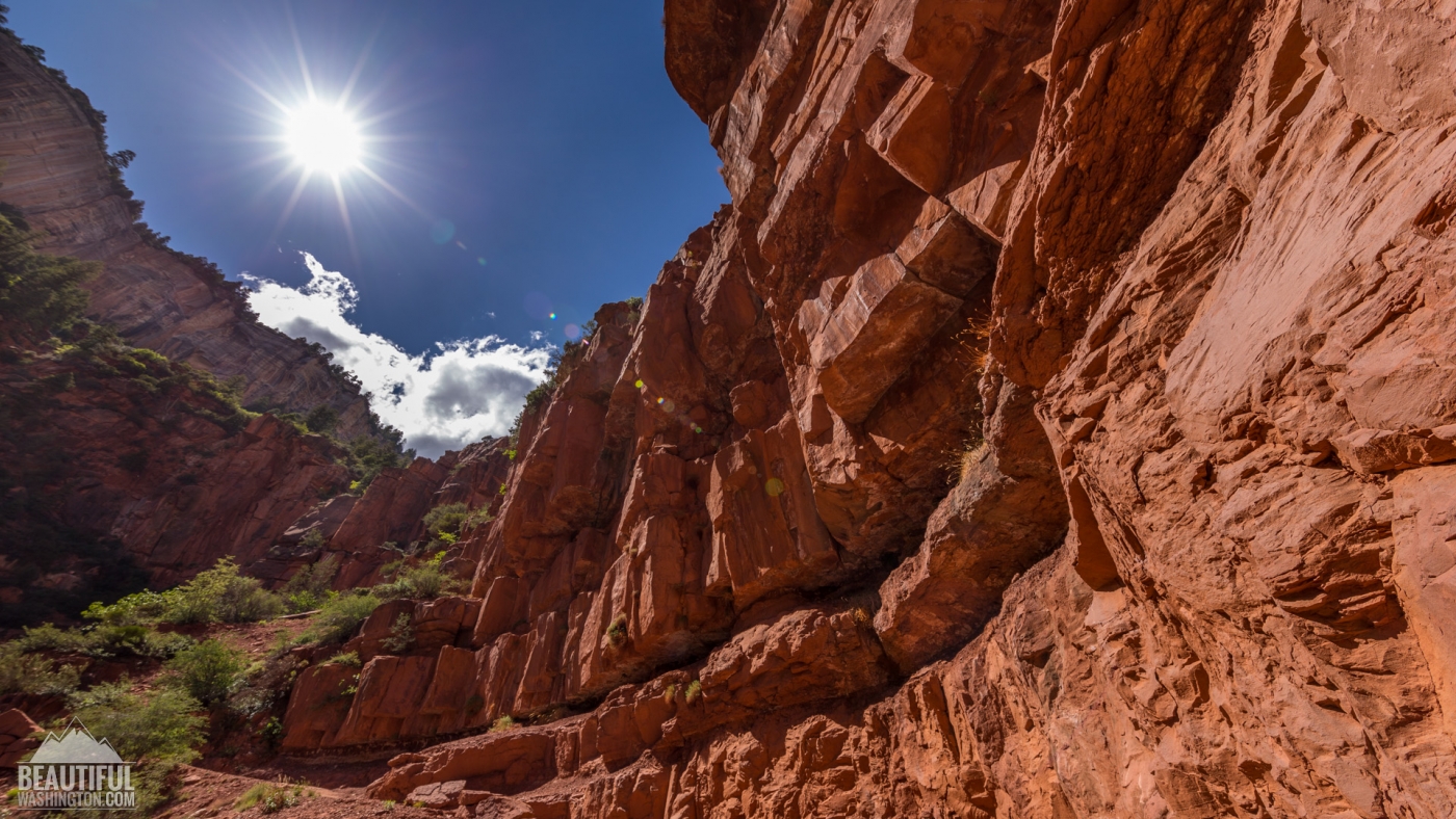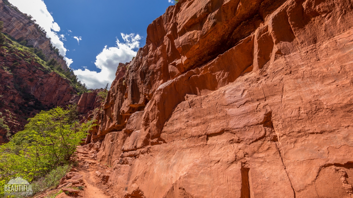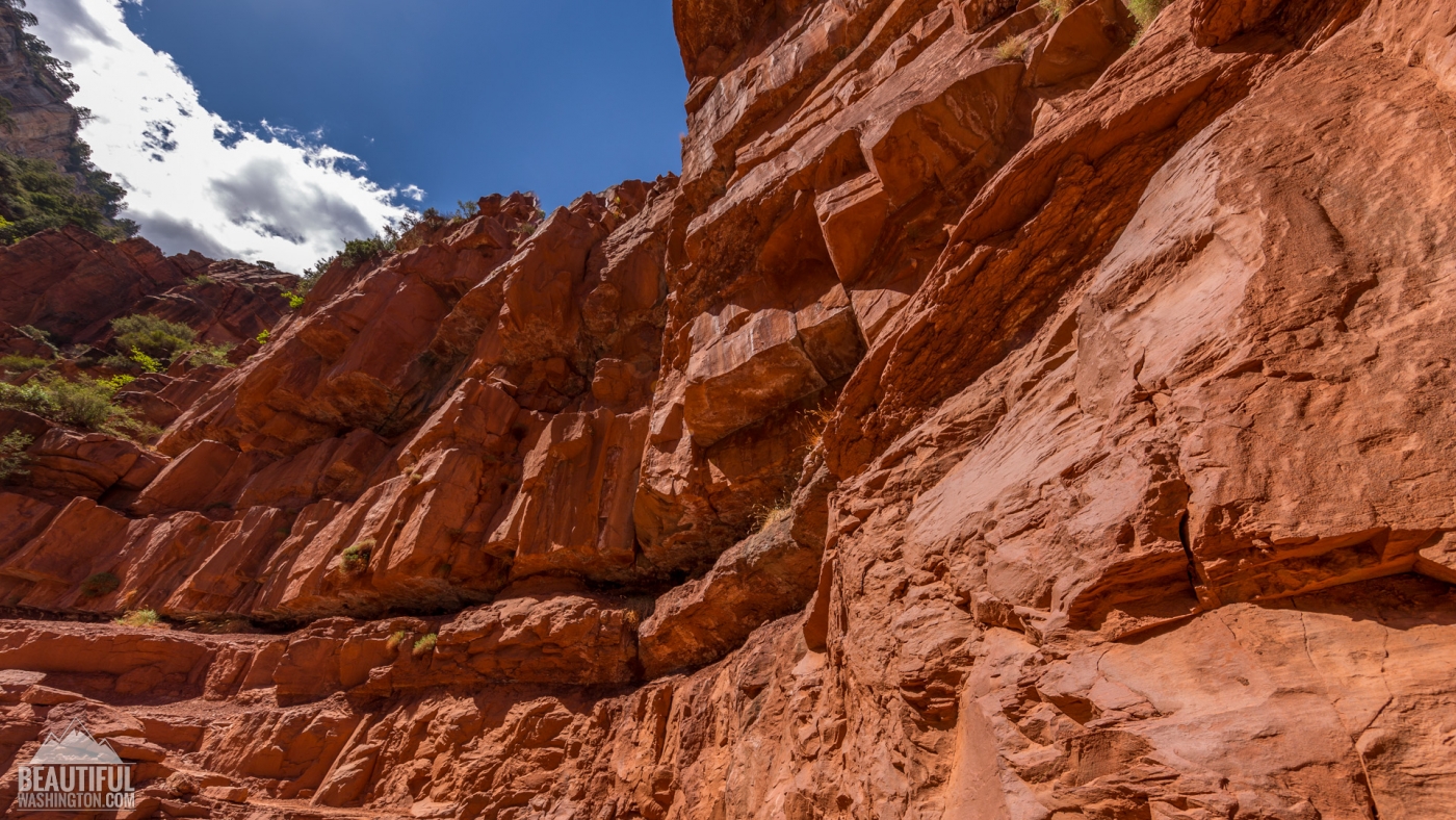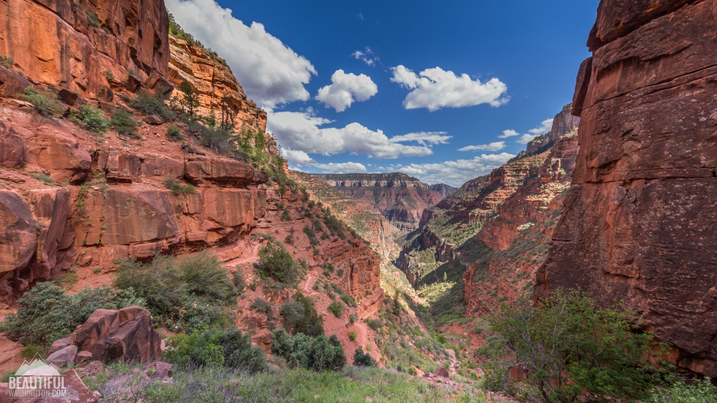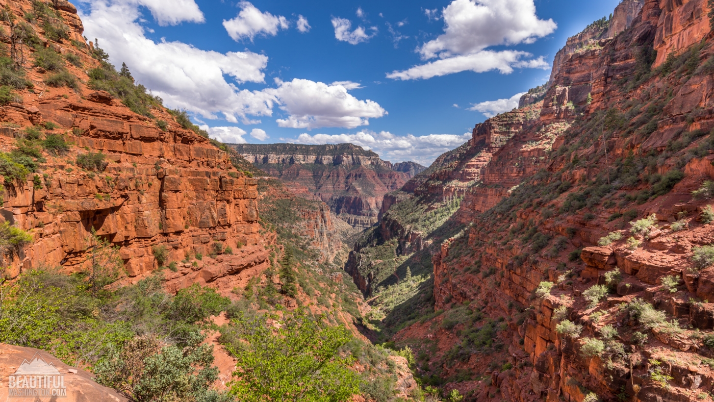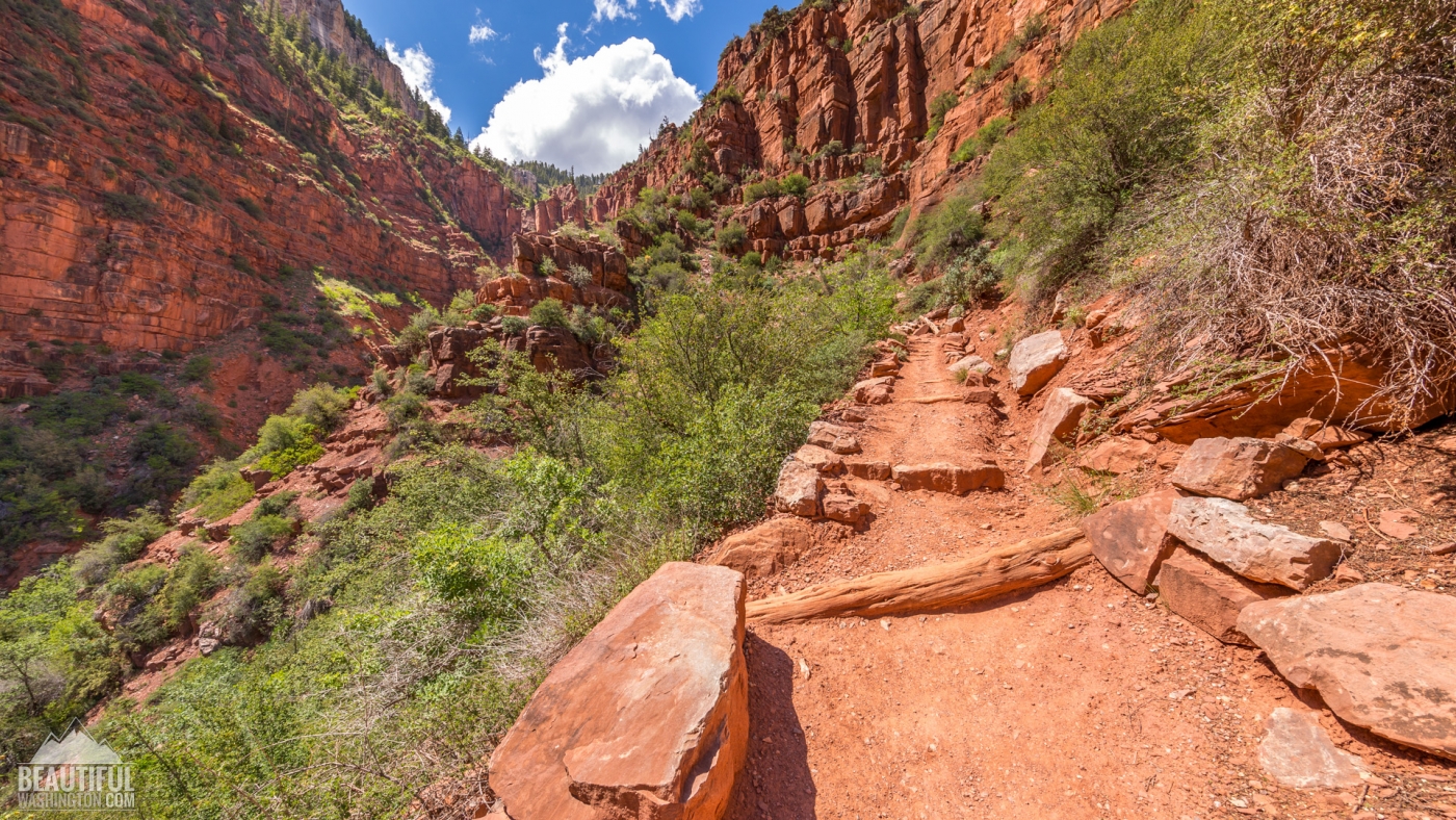 The Roaring Springs is a wonderful place with remarkable views, where water spurts from the cliffs giving an origin to Bright Angel Creek. The Roaring Springs is the last point on the North Kaibab Trail, recommended as a day-hike. Here you may chose any of 2 options. You may turn back and climb up the same trail you just came here thus finishing your day-hike. Or you can walk about two more miles and overnight at a Cottonwood Campground (one of 2 campgrounds, available on the North Kaibab Trail). But to overnight at any of these campgrounds you need to receive a permit from the Grand Canyon National Park Backcountry Information Center. And any at-large camping is strictly forbidden on the North Kaibab Trail.