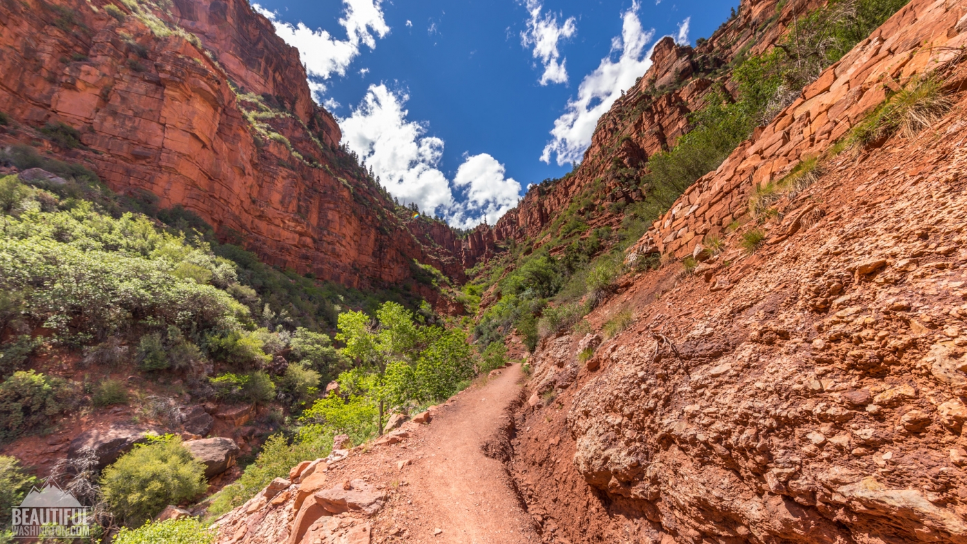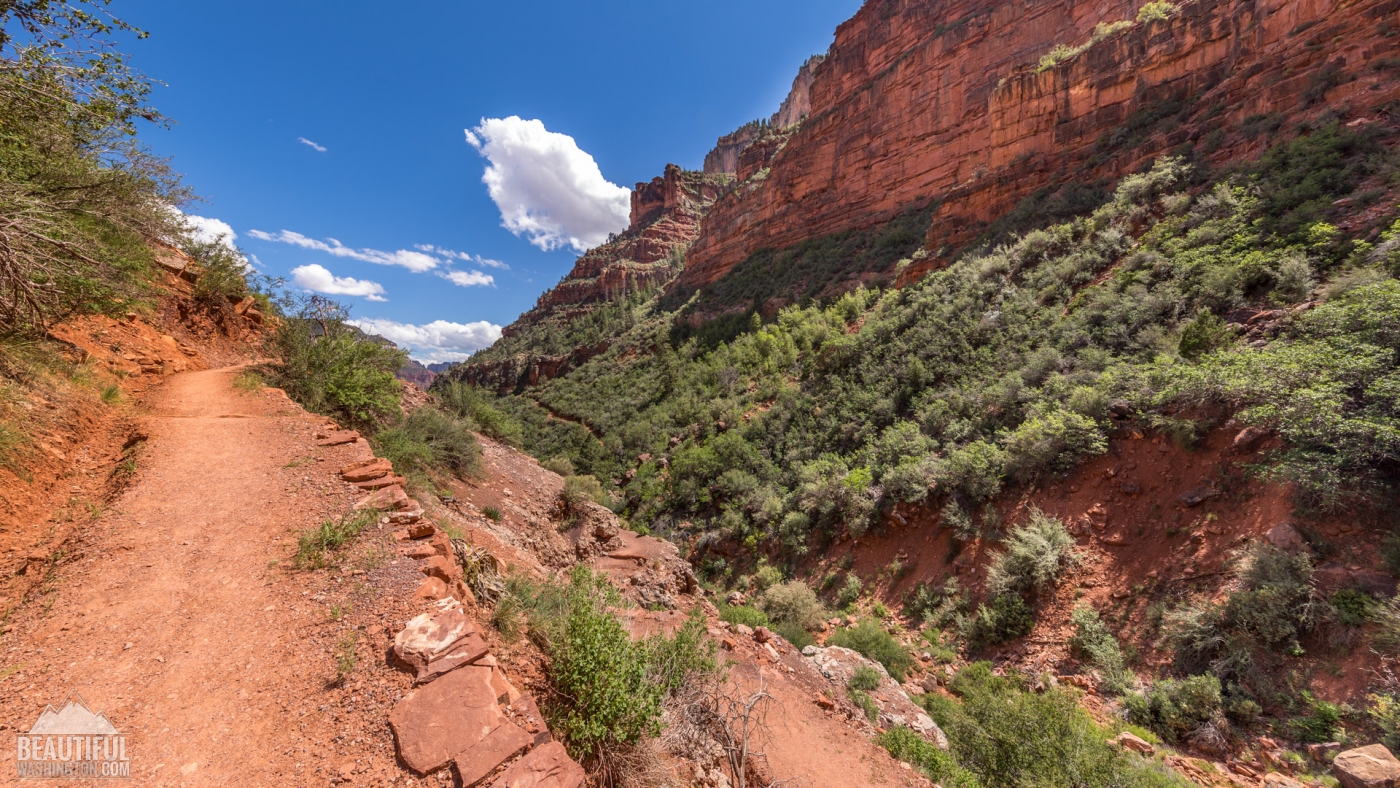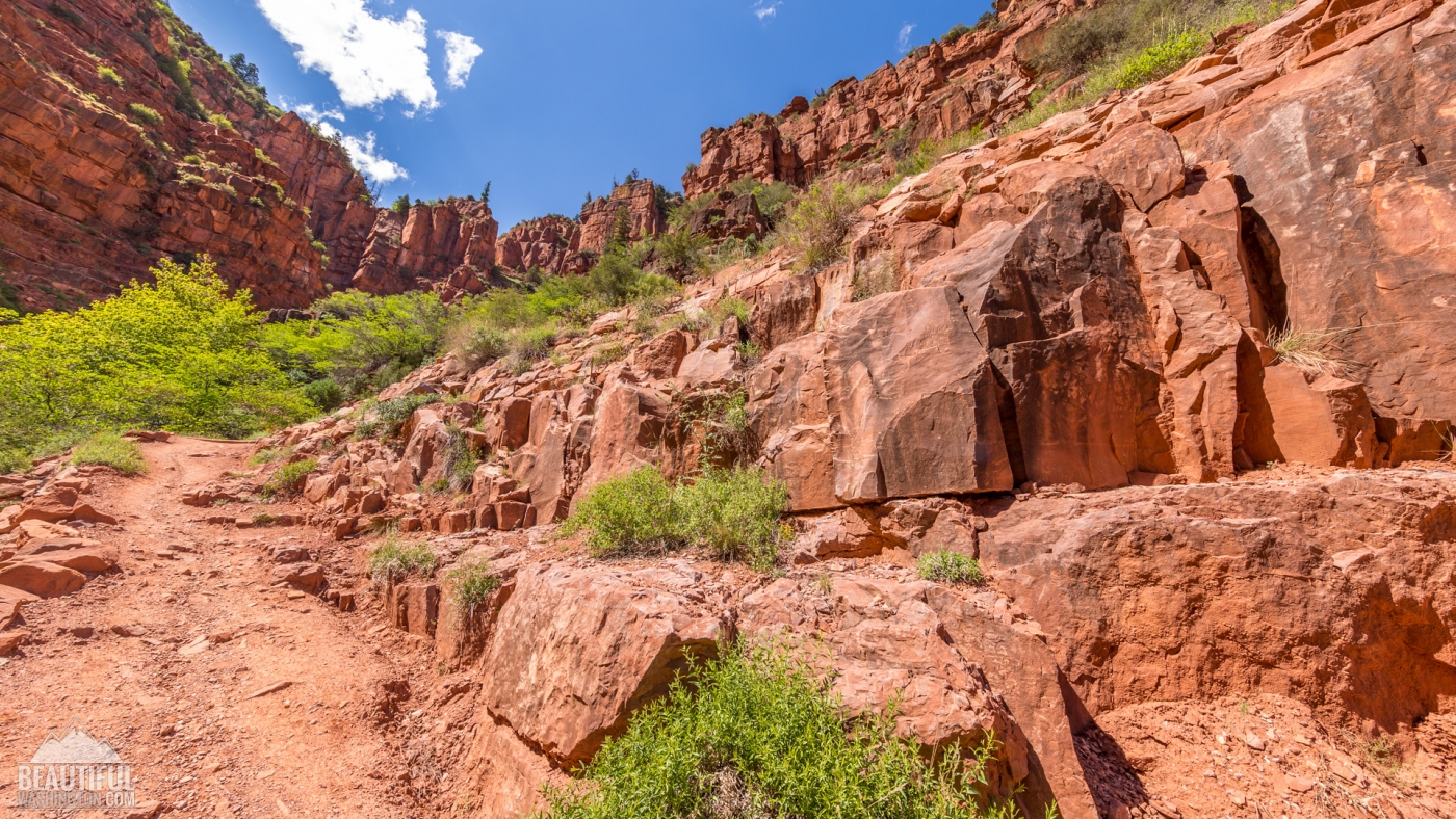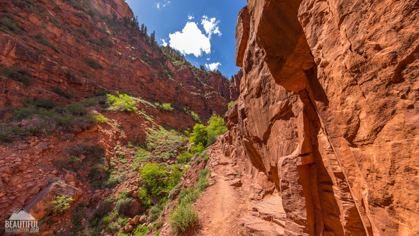 The last stopping point on the North Kaibab Trail is the Bright Angel Campground. But on your way to it you will be amazed by a part of the trail, called “The Box”. It’s a place at the Bright Angel Canyon where the walls of it are very close and give you an impression of being boxed. The trail here is not steep, but because of low elevation here, the temperature gets hot here already in the morning, making the hike really hard.