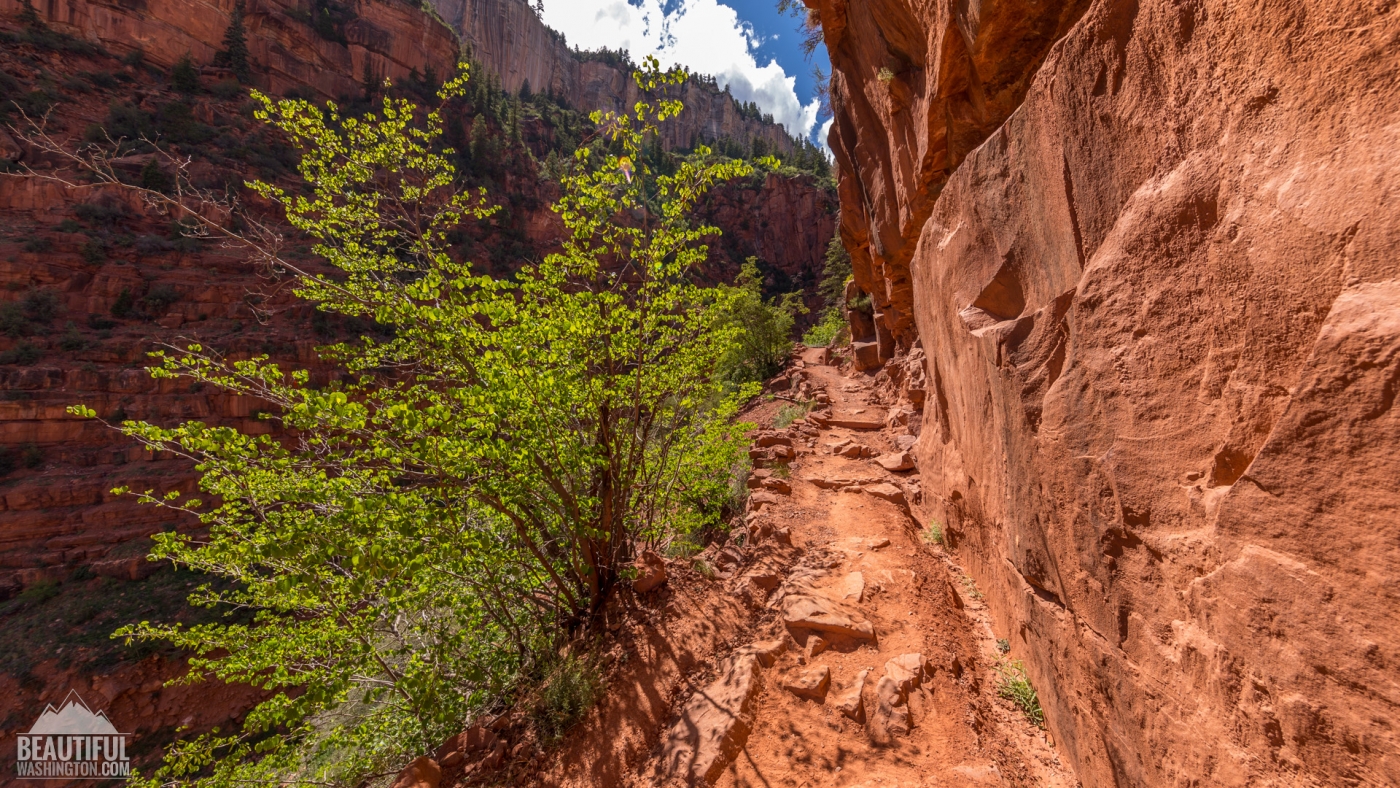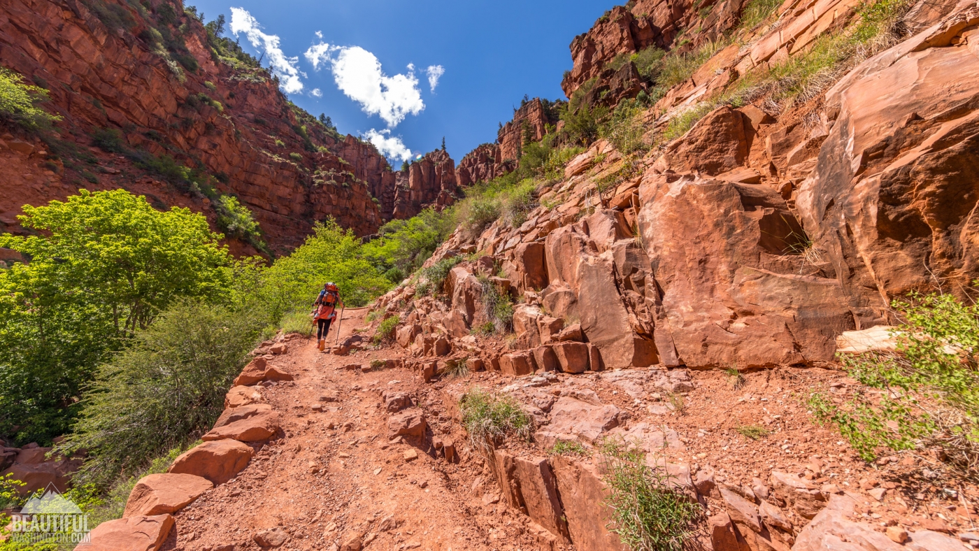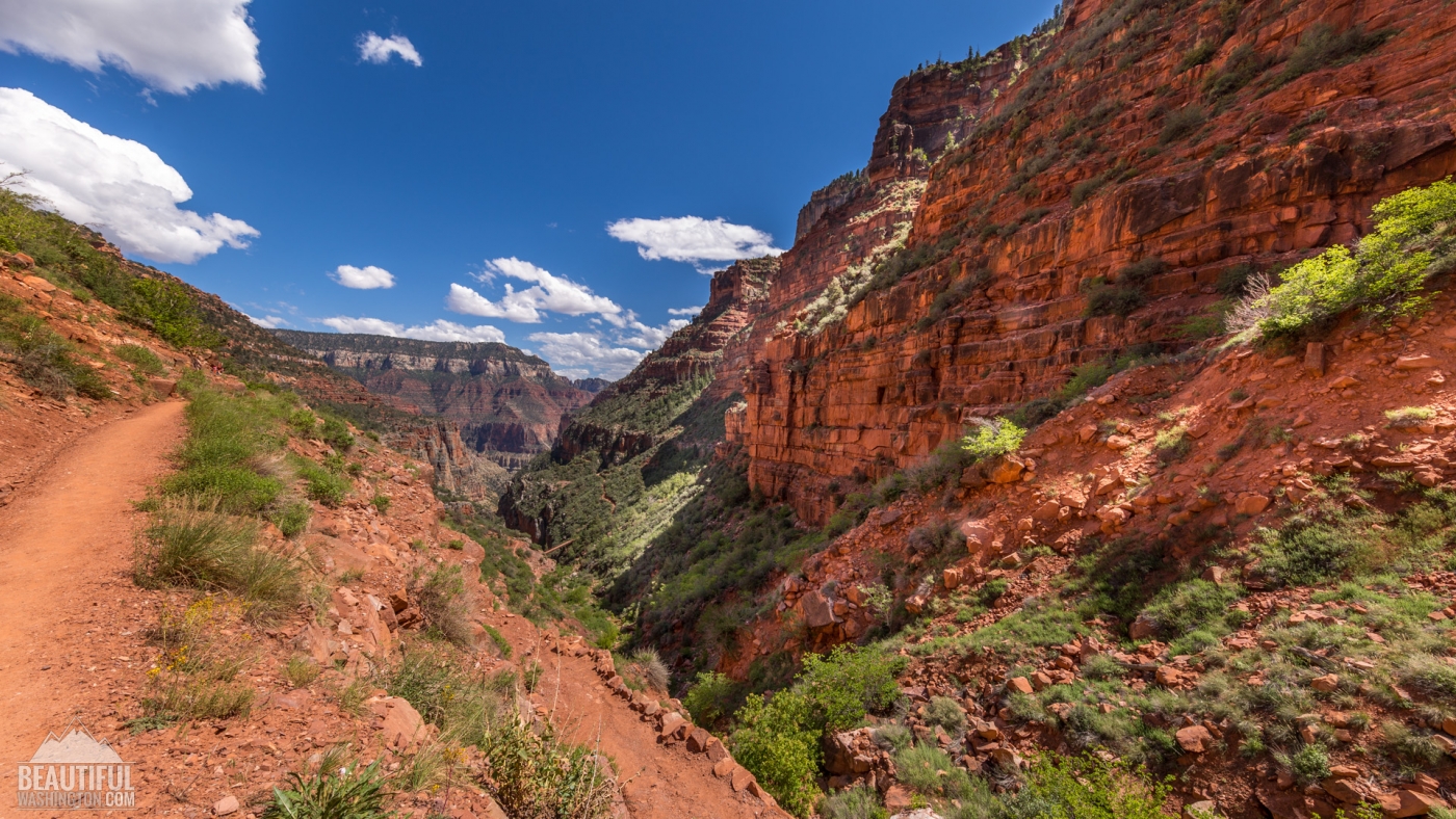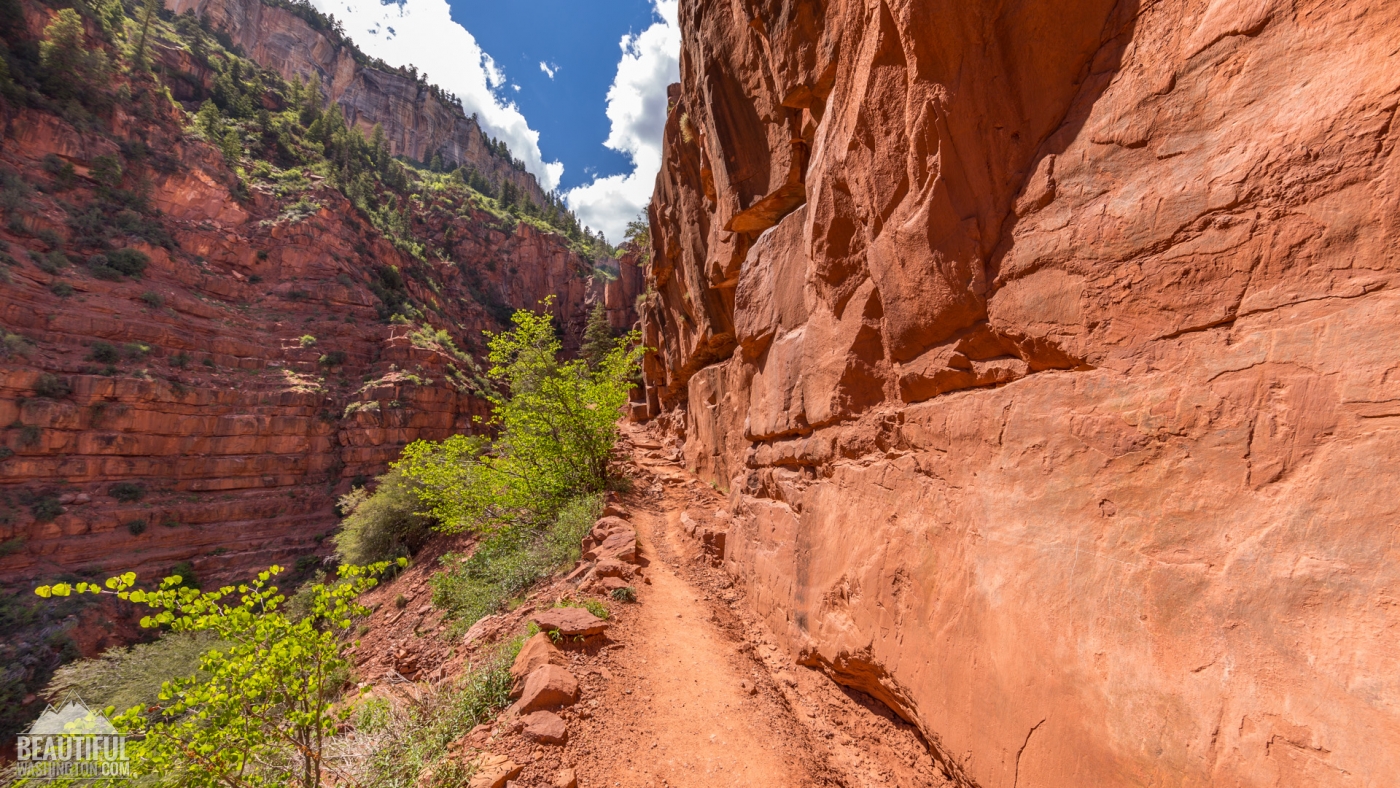 The last stopping point on the North Kaibab Trail is the Bright Angel Campground. But on your way to it you will be amazed by a part of the trail, called “The Box”. It’s a place at the Bright Angel Canyon where the walls of it are very close and give you an impression of being boxed. The trail here is not steep, but because of low elevation here, the temperature gets hot here already in the morning, making the hike really hard.