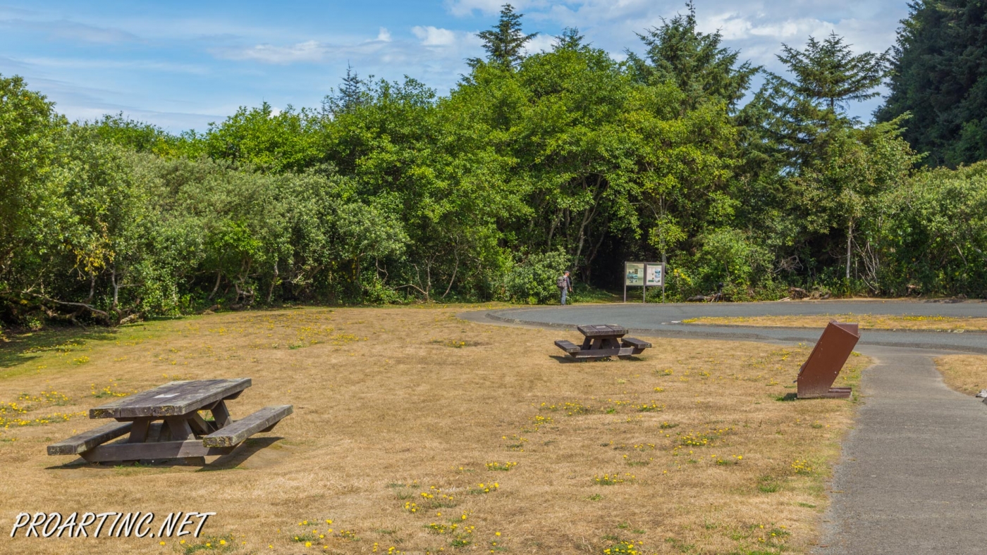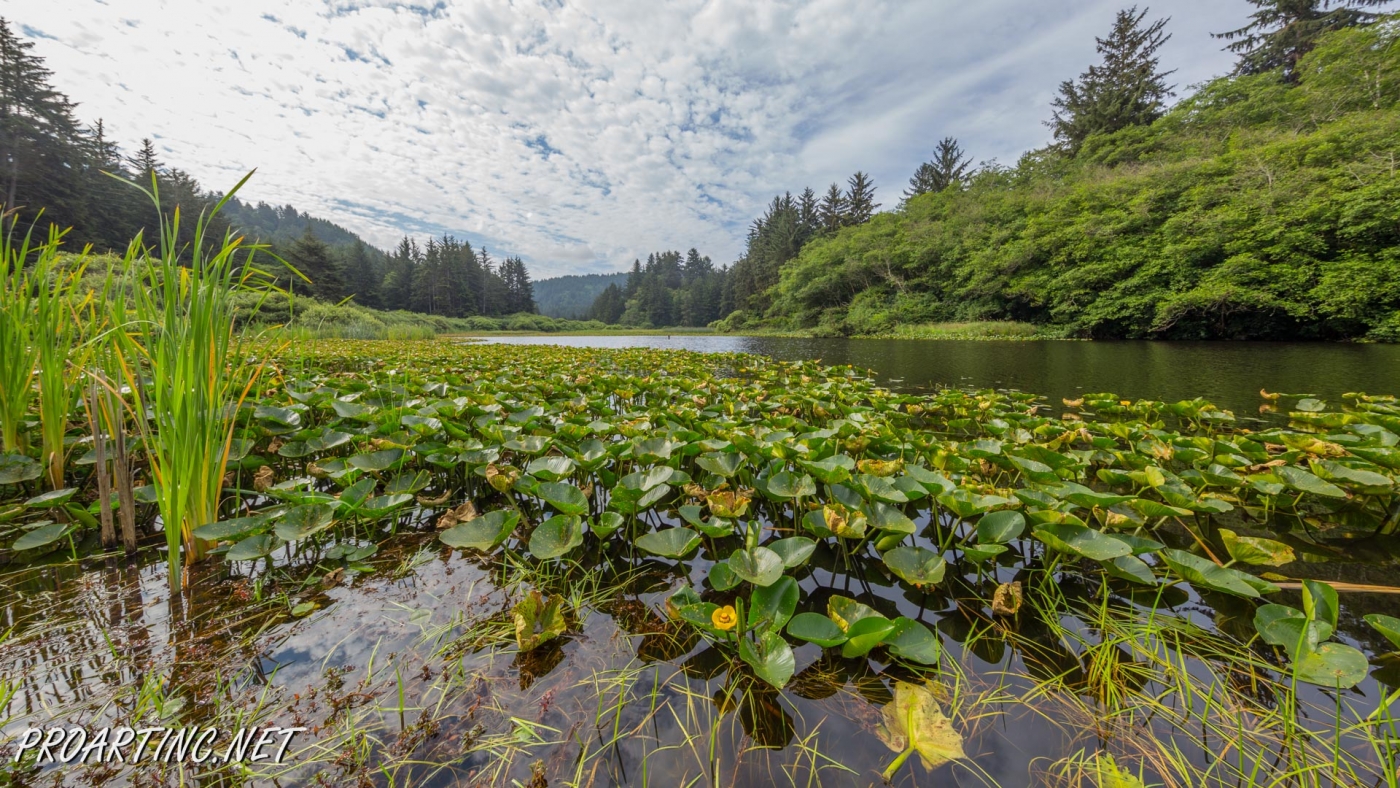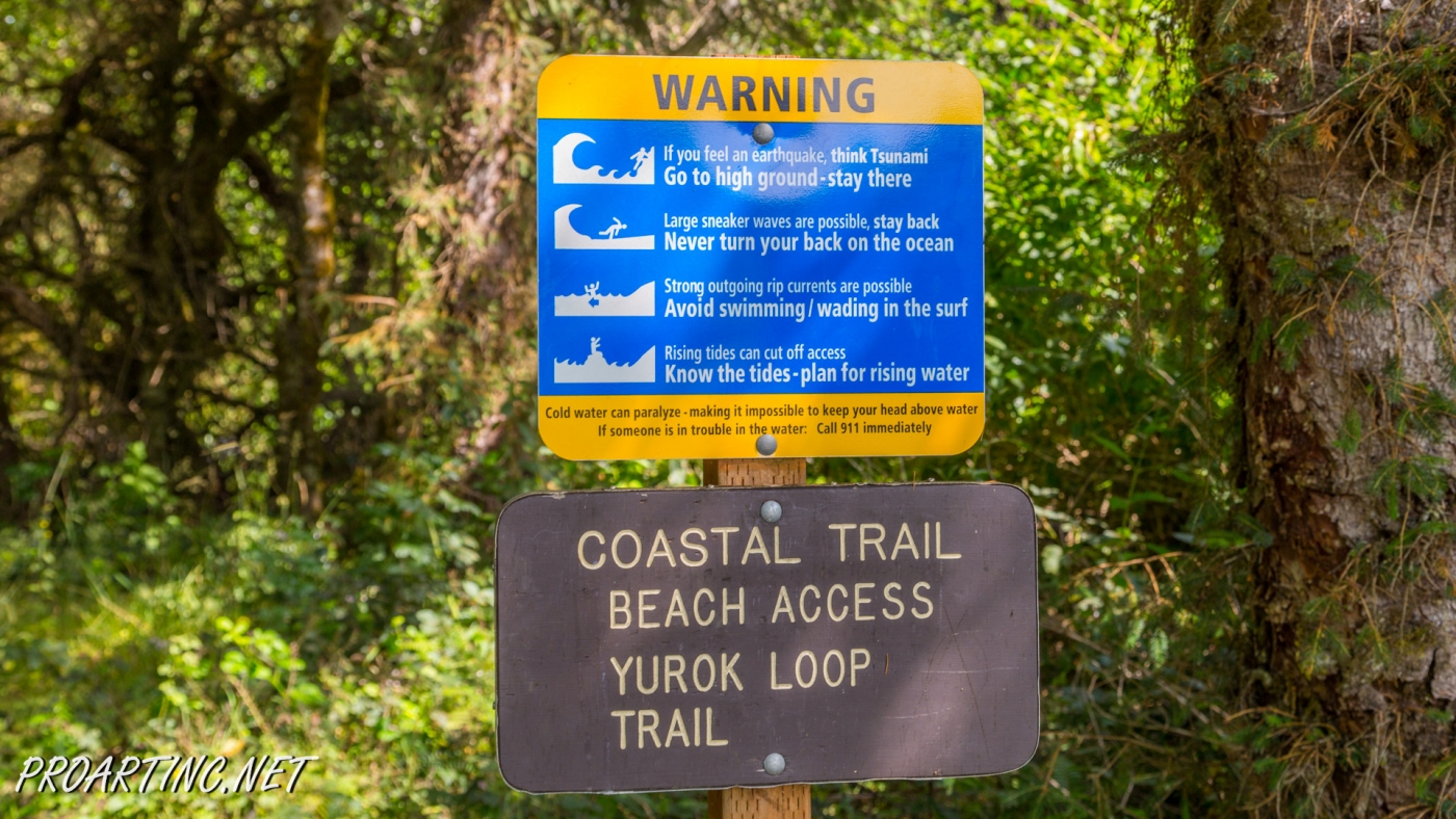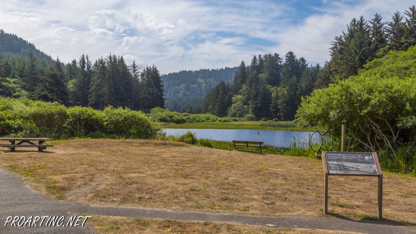 The best way to start hiking the Hidden Beach Section of the Coastal Trail is from the Lagoon Creek parking area. The parking lot is overlooking a nice Lagoon Pond the surface of which is half covered by water lilies. This parking area (also known as Lagoon Creek Picnic Area) has restrooms, picnic tables and information stands, providing the visitors with some data about the Yurok Loop Trail, which will be the beginning of the hike.
