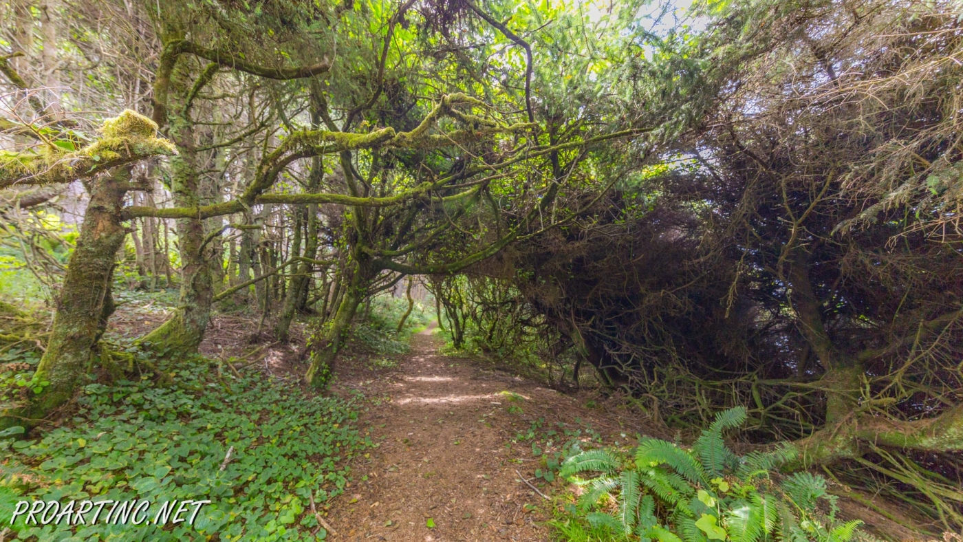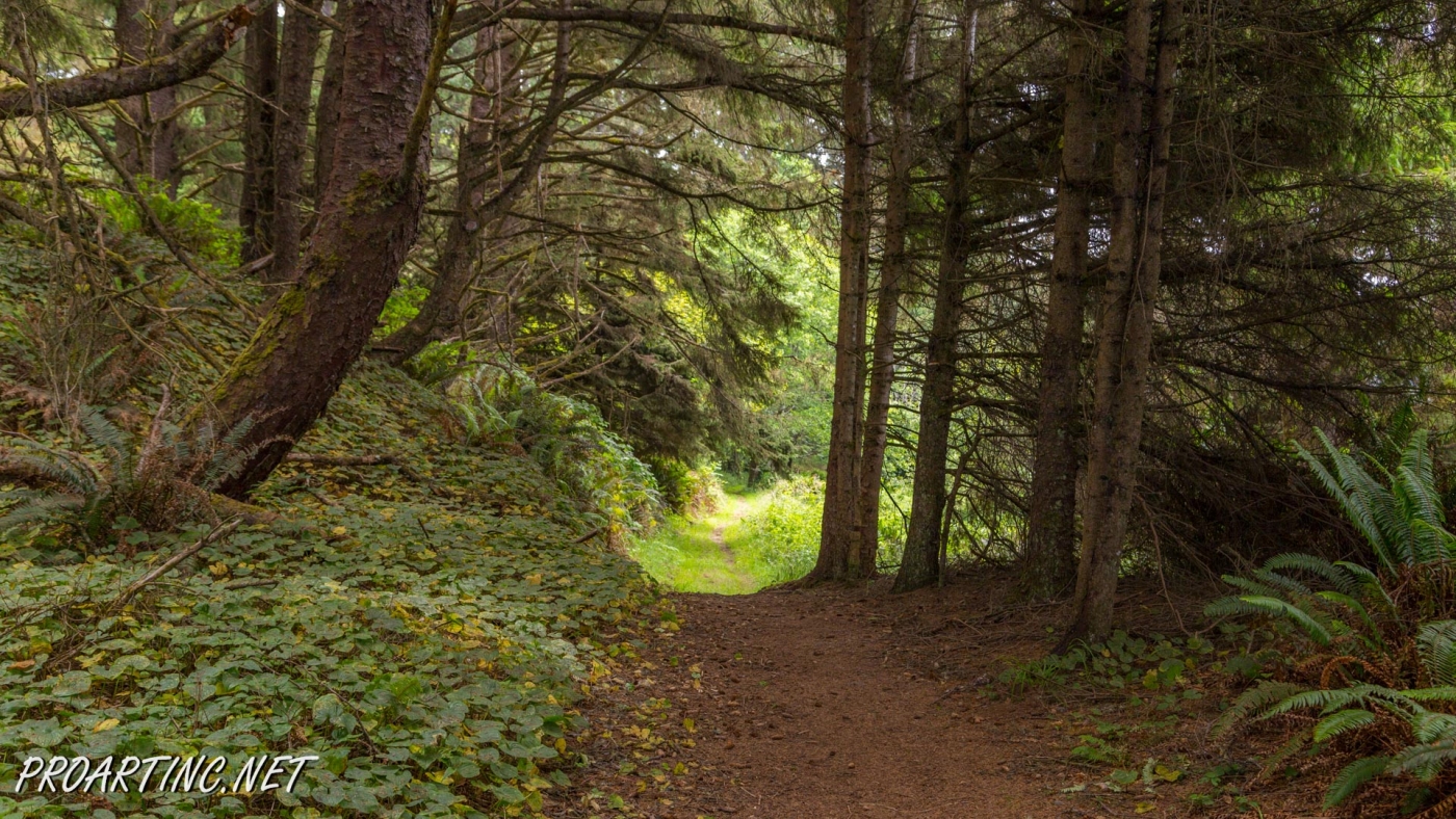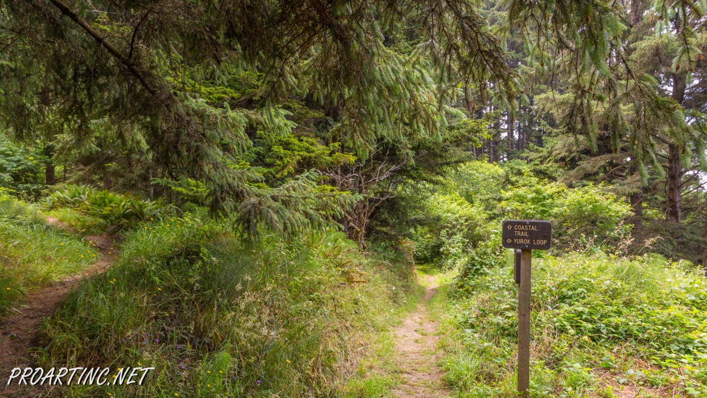 Following further the Coastal Trail you will notice that the grassy area is finished and the trail starts ascending into the spruce forest. From time to time the tops of the trees close canopy forming some fantastic tunnels, through which the trail runs. After the Hidden Beach the trail moves more inland, away from the shoreline, running through a spruce forest with a dense understorey consisting of blackberry bushes and ferns. There will still be some openings along the trail offering the hikers amazing views on the ocean and rocky shoreline, which are now quite far below. But the only closest access to the ocean coastline will be only when the trail reaches the intersection with the path, leading to the Klamath Overlook.