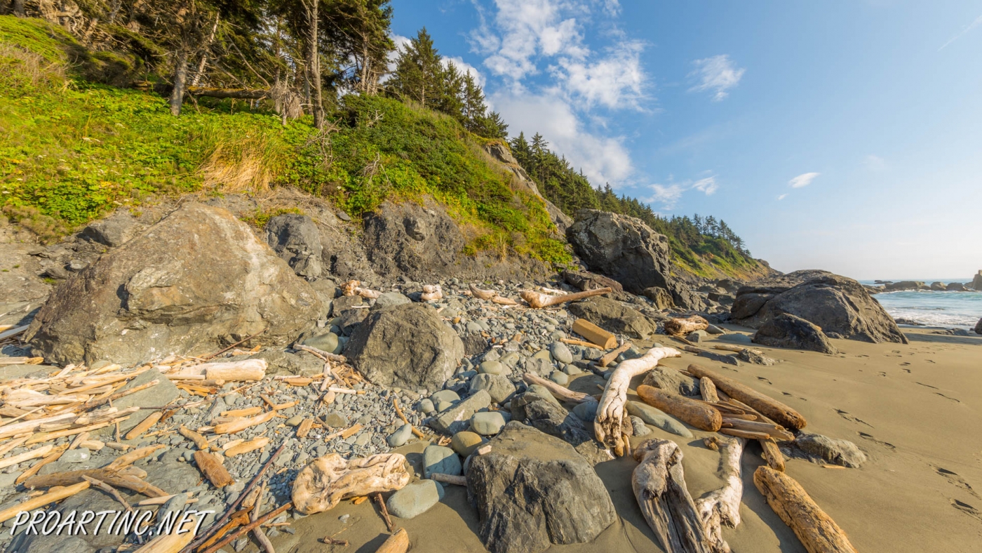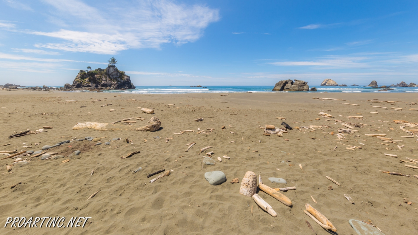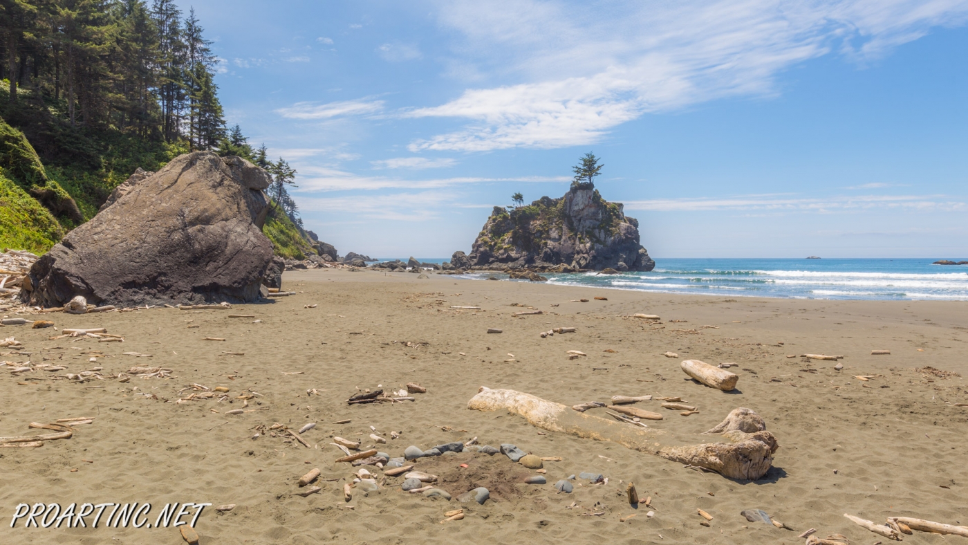 After passing the intersection with Yurok Loop Trail (where it turns left and takes you back to the parking lot), in approximately half a mile the trail reaches a spur trail, leading to the Hidden Beach. You may spend some time following this spur trail and admire this beautiful secluded beach. Being not very big (only about 0,25 mile), this place is really unforgettable. Grey sand with large boulders scattered along the beach, huge sea-stacks rising from the water, and solitude of the beach make it a really special place. If you are lucky, you may see the spouts of the whales, or hear the distant voices of sea-lions.