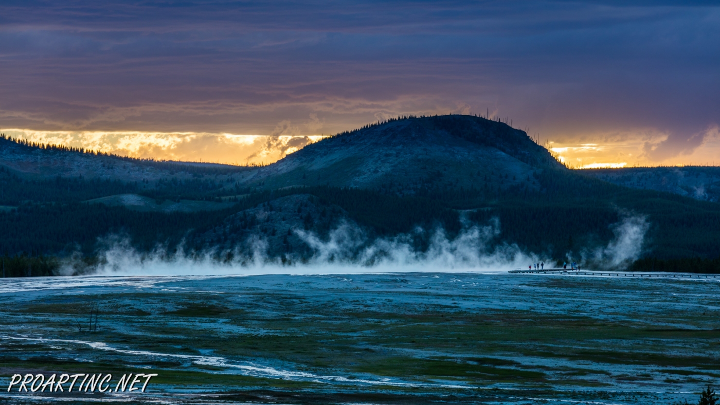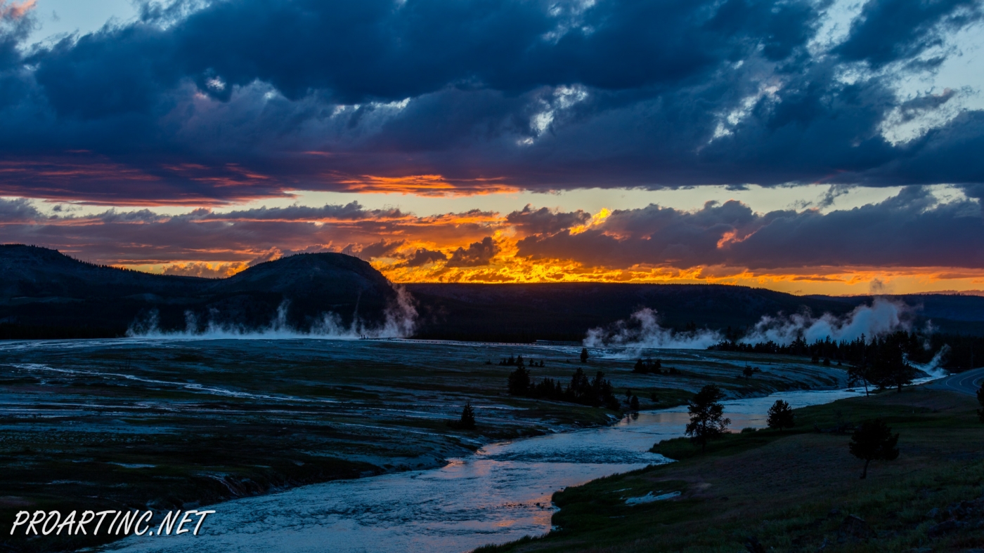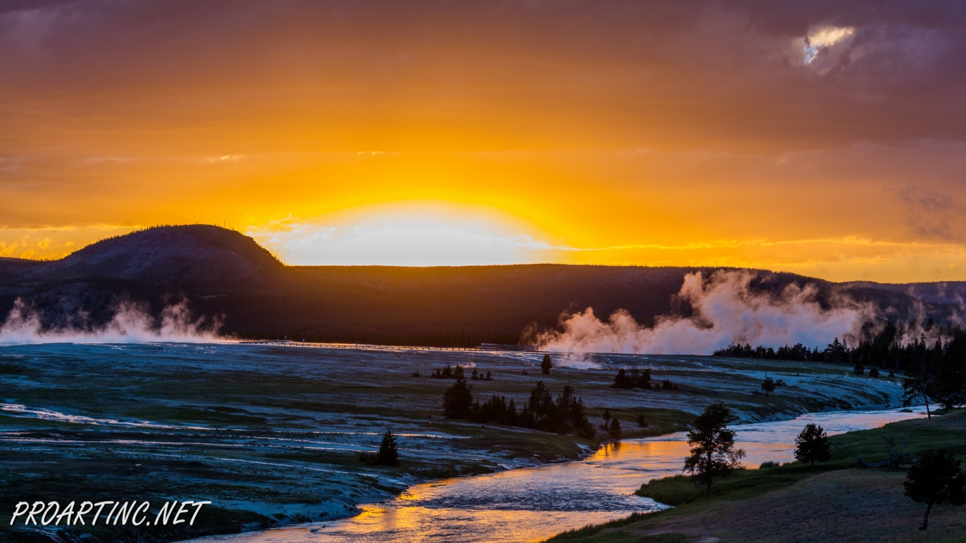 Bright colors of the sky are just indescribable by words. John Lubbock said: “Sunsets are so beautiful that they almost seem as if we were looking through the gates of Heaven.” And this was a special sunset, the sky was colored in unbelievably beautiful and unearthly colors, it was the time to marvel at the beauty of red, orange and yellow stripes in the sky. They are especially beautiful in Yellowstone above miraculous geothermal features.