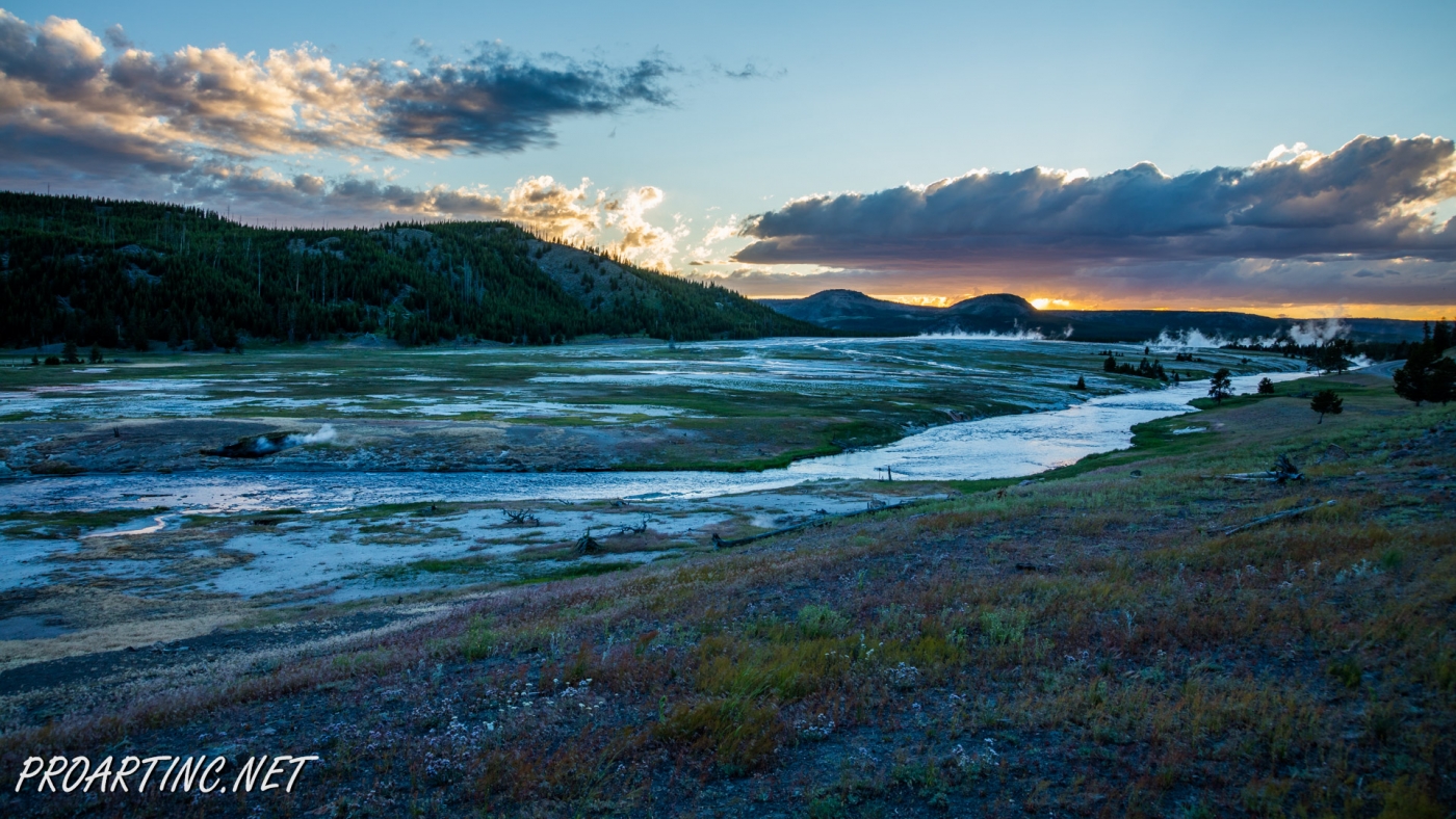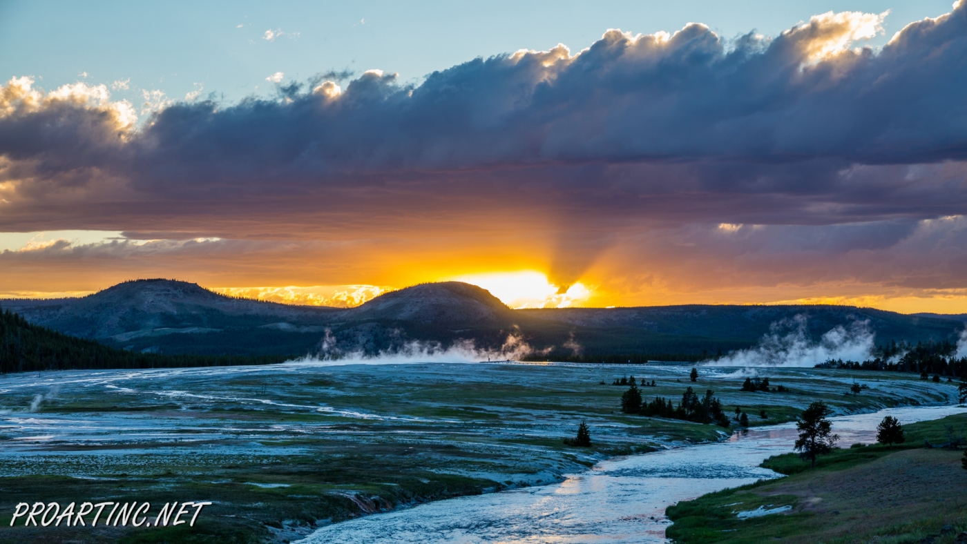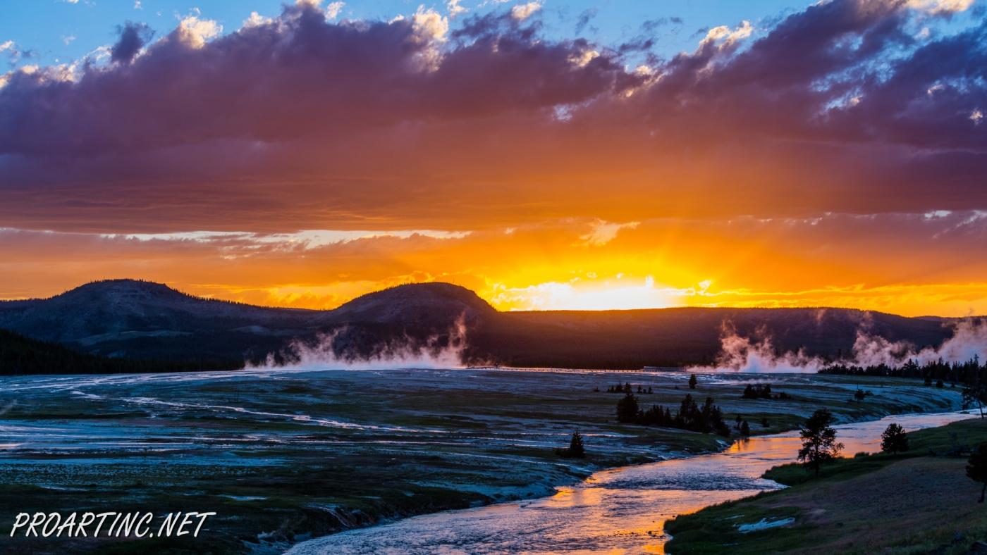 Bright colors of the sky are just indescribable by words. John Lubbock said: “Sunsets are so beautiful that they almost seem as if we were looking through the gates of Heaven.” And this was a special sunset, the sky was colored in unbelievably beautiful and unearthly colors, it was the time to marvel at the beauty of red, orange and yellow stripes in the sky. They are especially beautiful in Yellowstone above miraculous geothermal features.