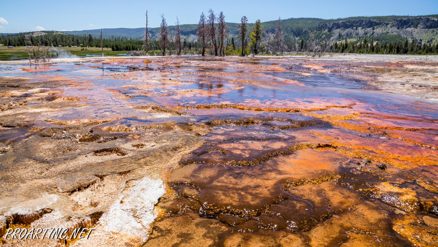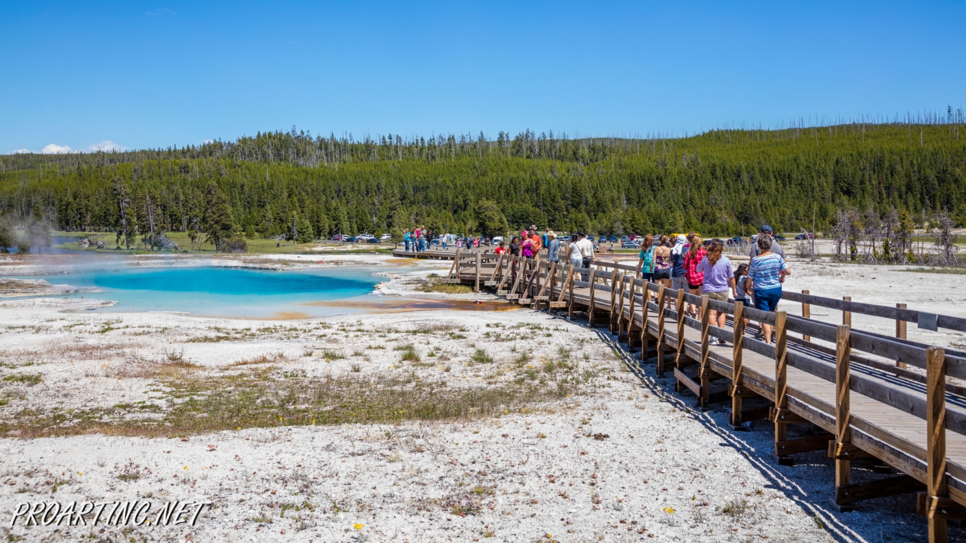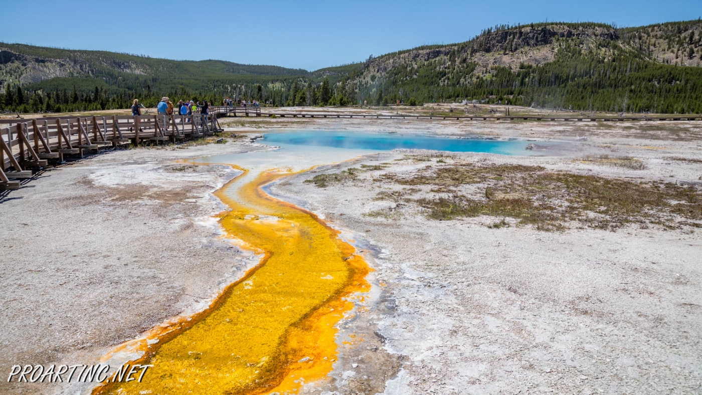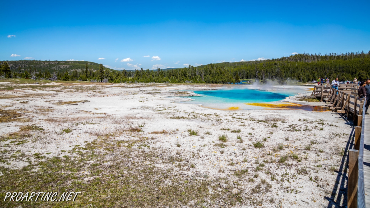 Biscuit Basin is part of Upper Geyser Basin and is home for Mustard Spring, beautiful Sapphire Pool and Black Opal Pool, Shell Geyser, Avoca Spring, Jewel Geyser, etc.