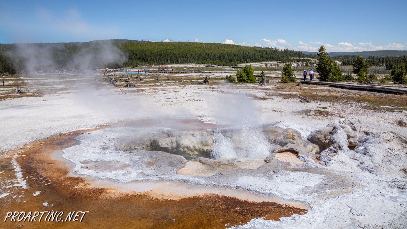 Biscuit Basic is located at Yellowstone National Park, only 3 miles from a very famous Old Faithful. The basin got its name thanks to the deposits, biscuit-shaped, that were found on the territory around Sapphire Pool. On August 17, 1959 the earthquake took place, its epicenter was a few miles to the northwest and several days later Sapphire Pool began to erupt and the biscuit-shaped rocks were destroyed. The last eruption took place in 1991.