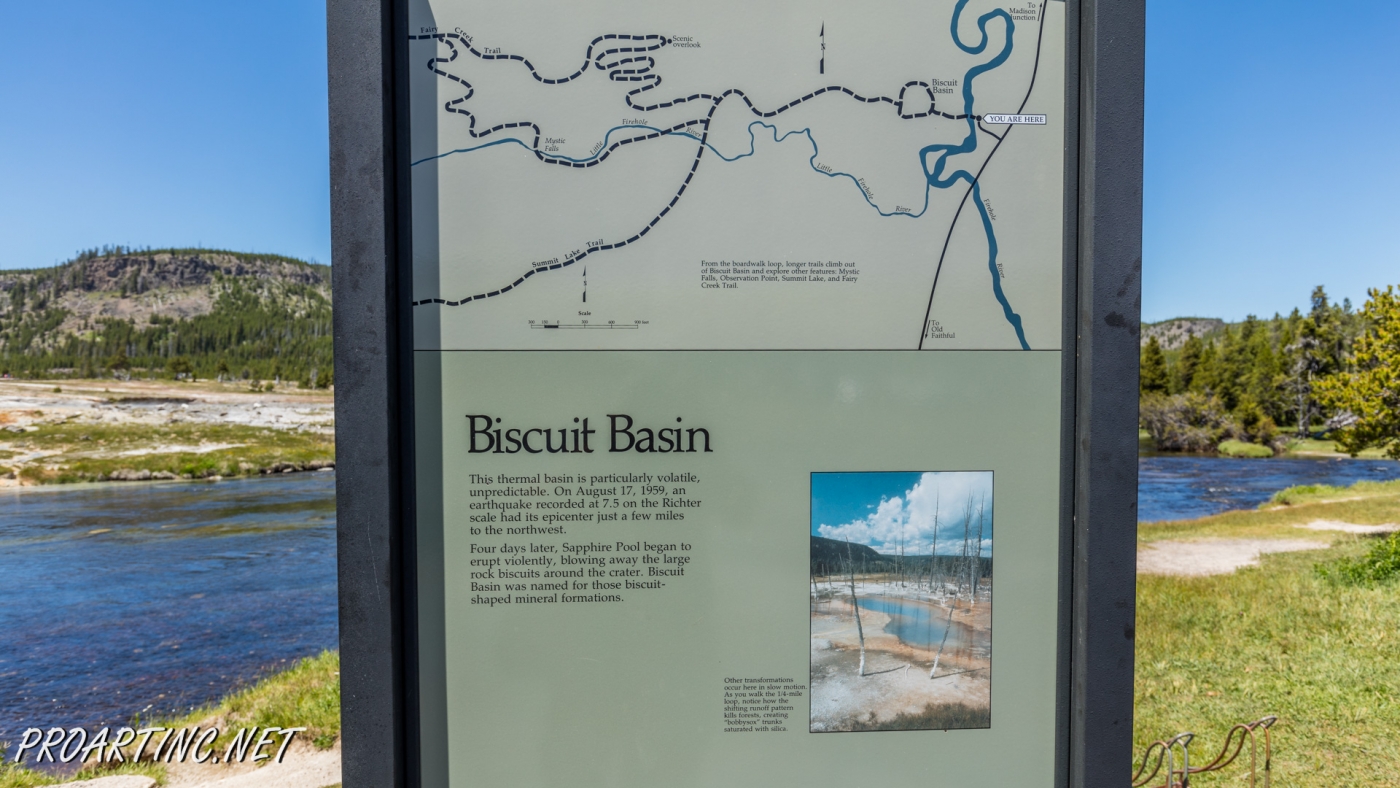 Drive 14 miles south of Madison Junction, follow the Grand Loop Road to reach the trailhead. Biscuit Basin is located in 3.5 miles south of the trailhead for Midway Geyser Basin and 5.5 miles south of the trailhead for Fountain Paint Pot Trail.