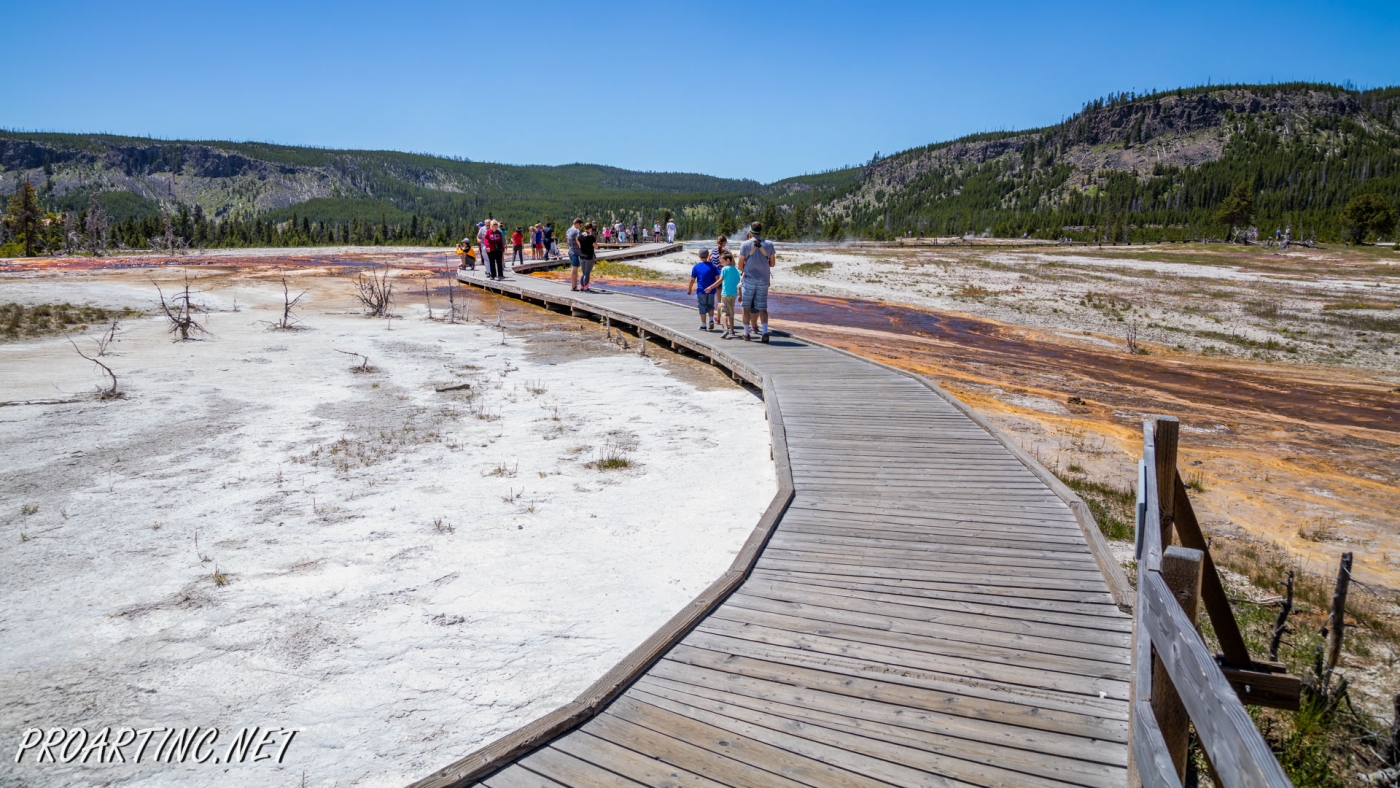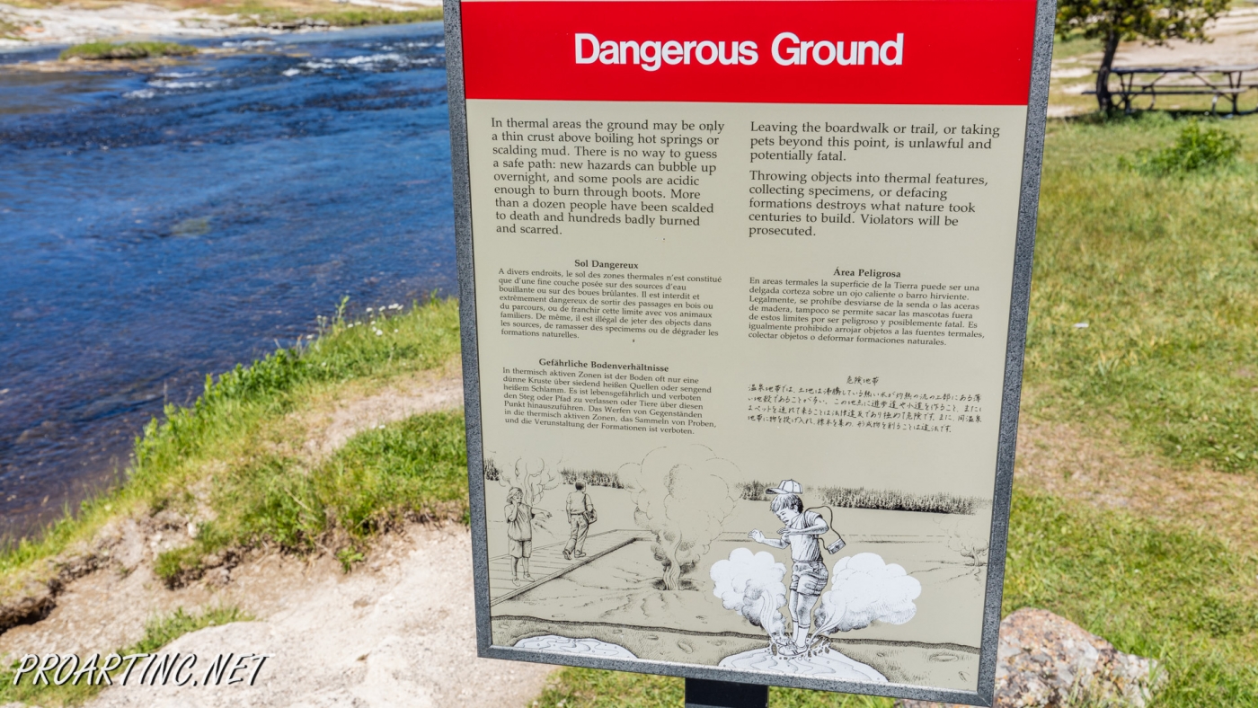 We also ask you to keep in mind that this ecosystem is very fragile. Yellowstone National Park preserves the biggest number of hydrothermal features on the planet. Hikers need to be careful, any rock or stick thrown into a hydrothermal object may cause end of its activity. Do not touch any hydrothermal features. Hikers should also stay on specially established trails or boardwalks.