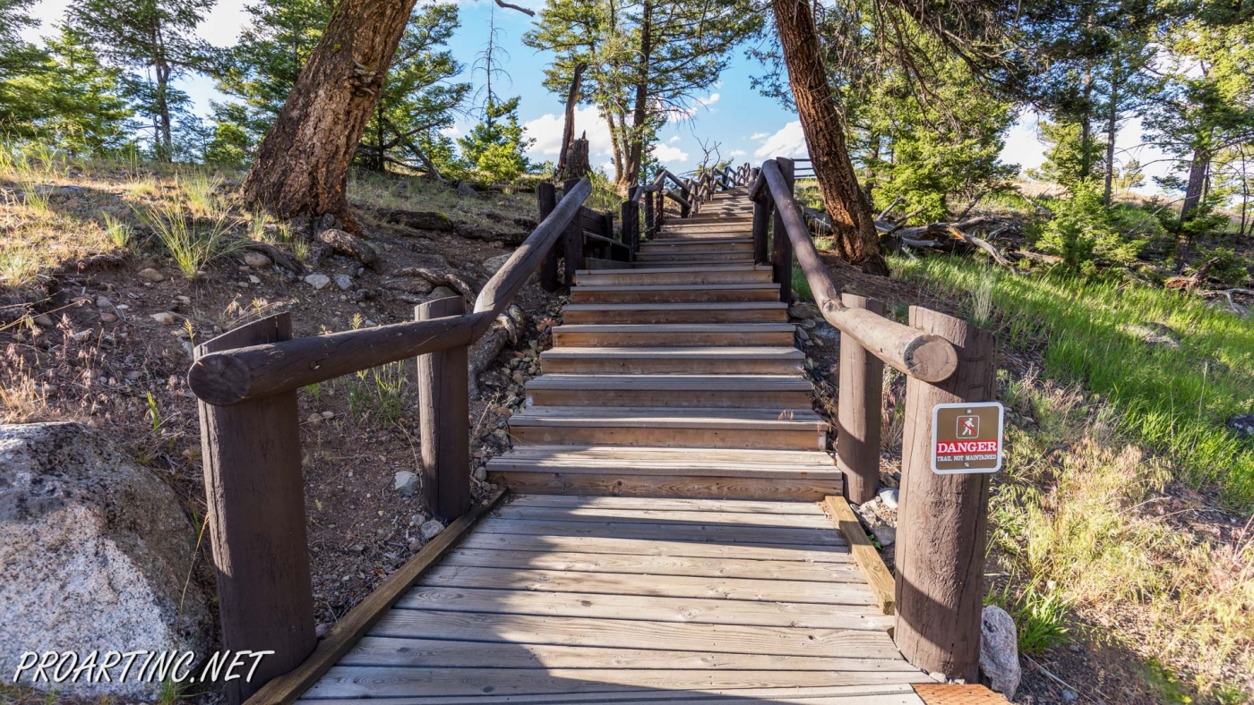 Calcite Spring Overlook will mesmerize hikers by the great views of the Yellowstone River, sulfuric walls and other hydrothermal features. This trail is an easy one, but provides unforgettable views. Just imagine, this is the place where history and present blend together. Be attentive and you will see steam that is rising from a pale slope. Mesmerizing views of the powerful nature!