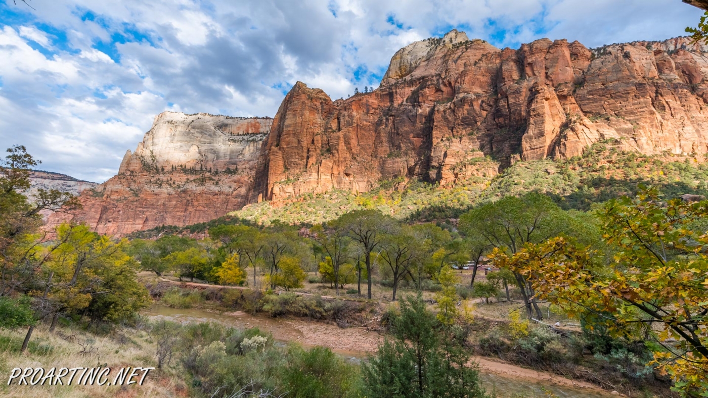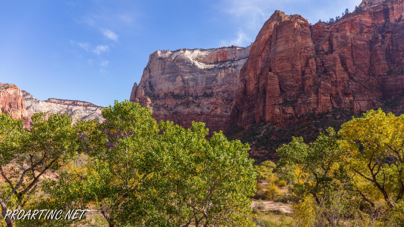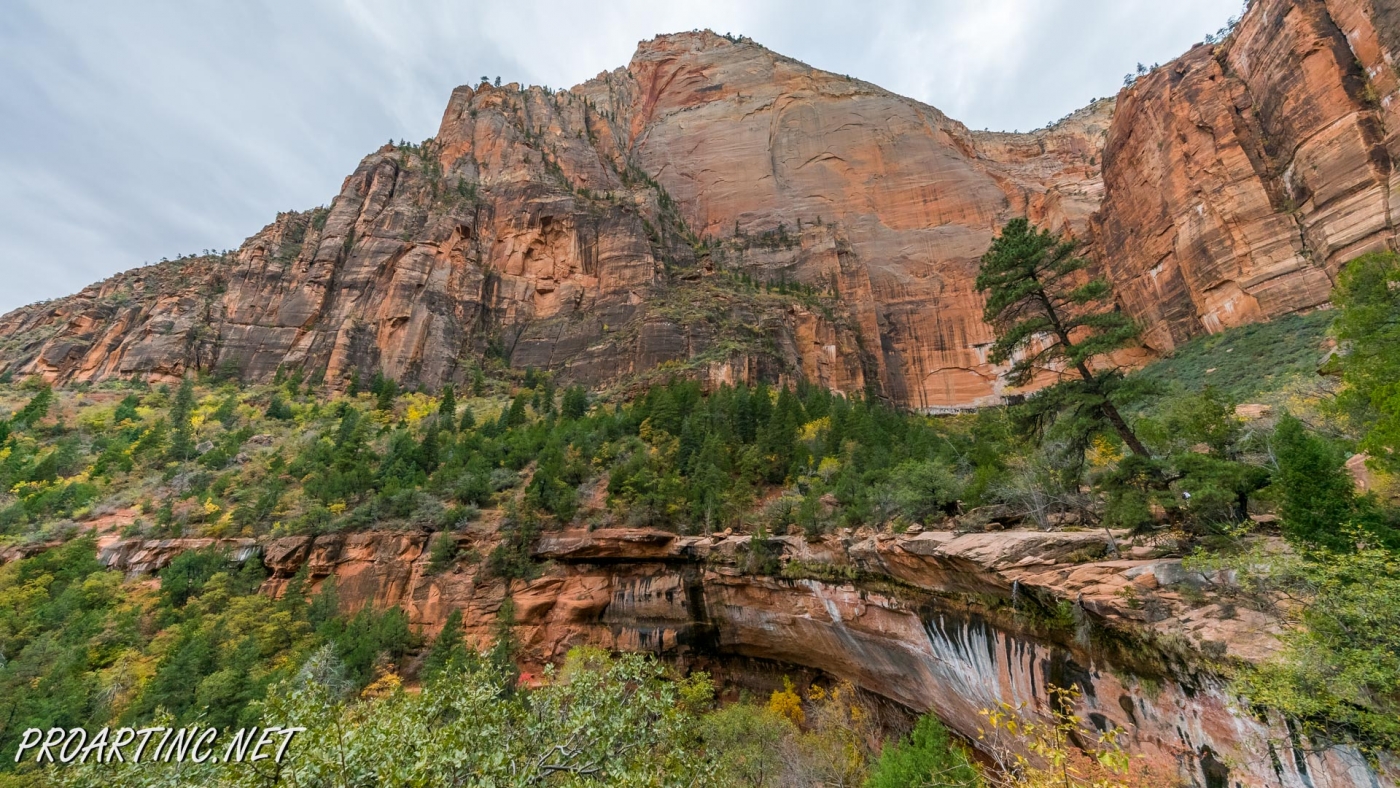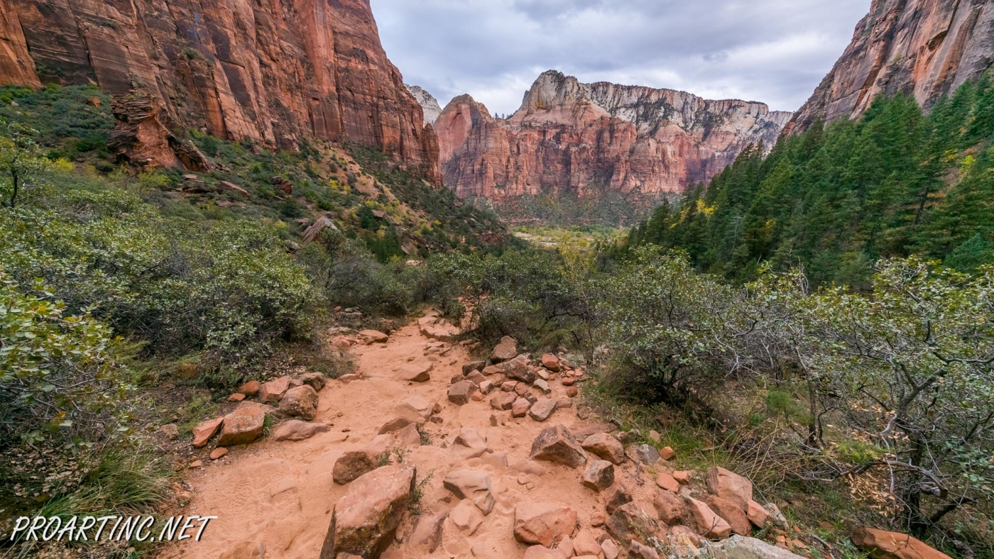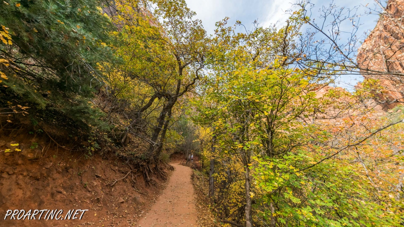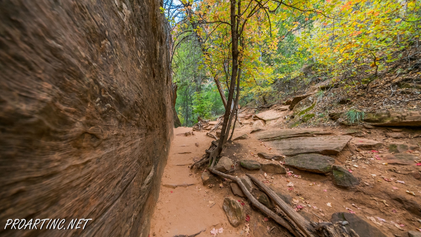 After leaving the Lodge you will need to cross the footbridge over the Virgin River and for some time (for approximately half a mile) the trail parallels the river. Enjoy the hike along a paved, shady part of the trail listening to the calming sounds of the flowing river and soaking in the great views of the canyon.