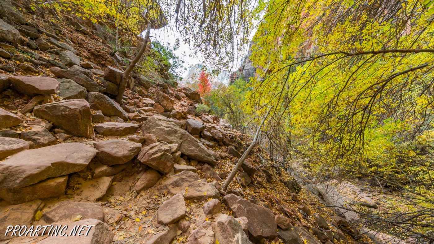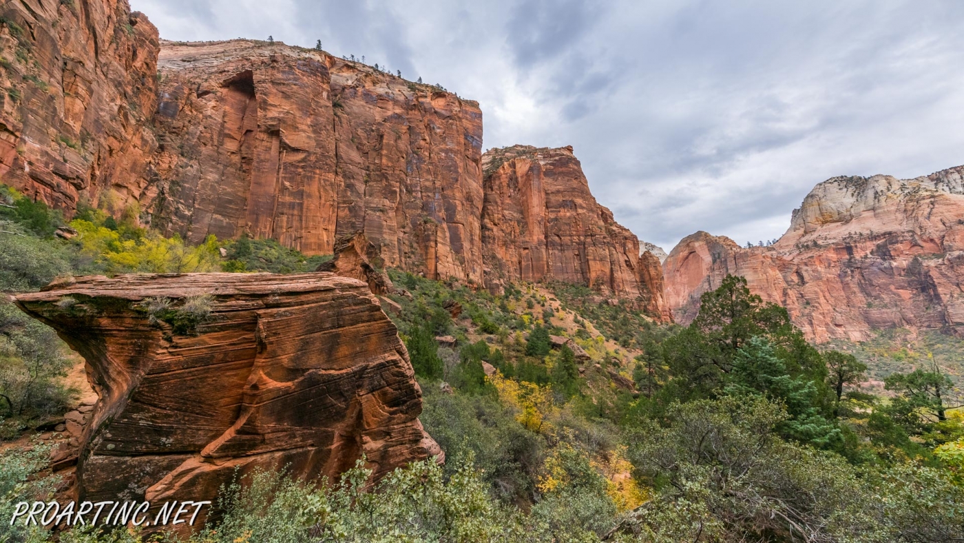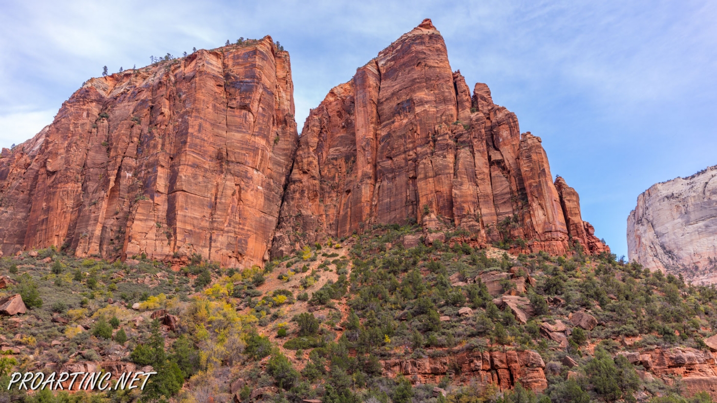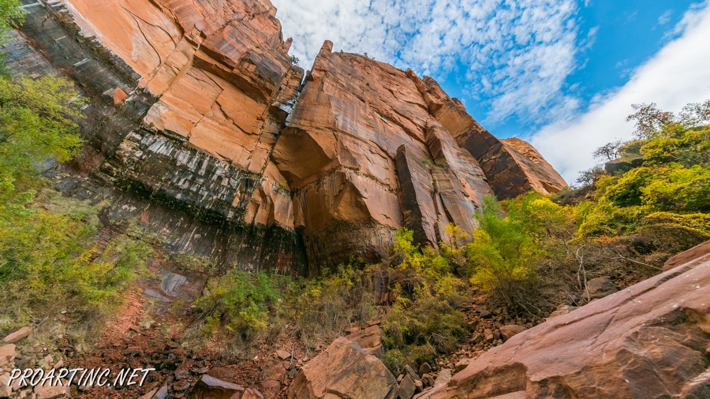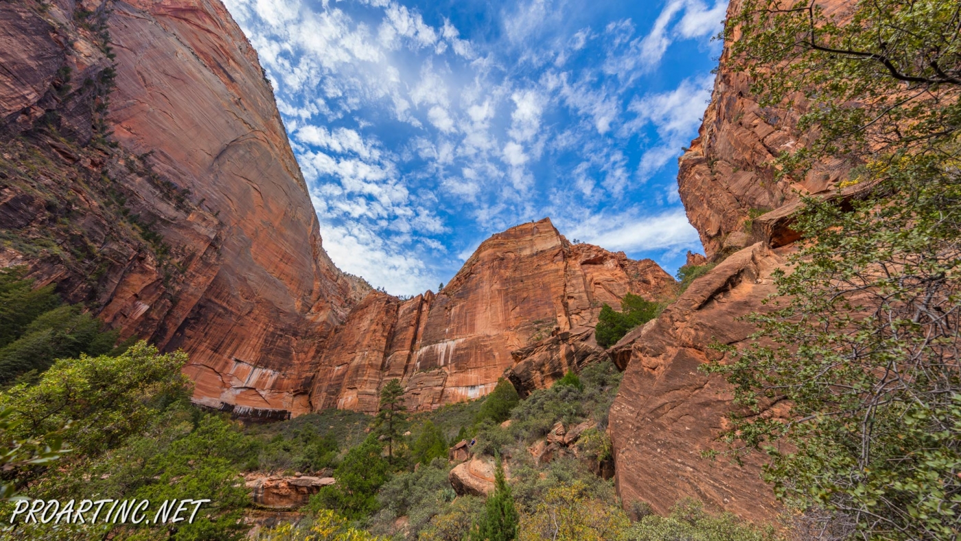 After leaving the Lodge you will need to cross the footbridge over the Virgin River and for some time (for approximately half a mile) the trail parallels the river. Enjoy the hike along a paved, shady part of the trail listening to the calming sounds of the flowing river and soaking in the great views of the canyon.