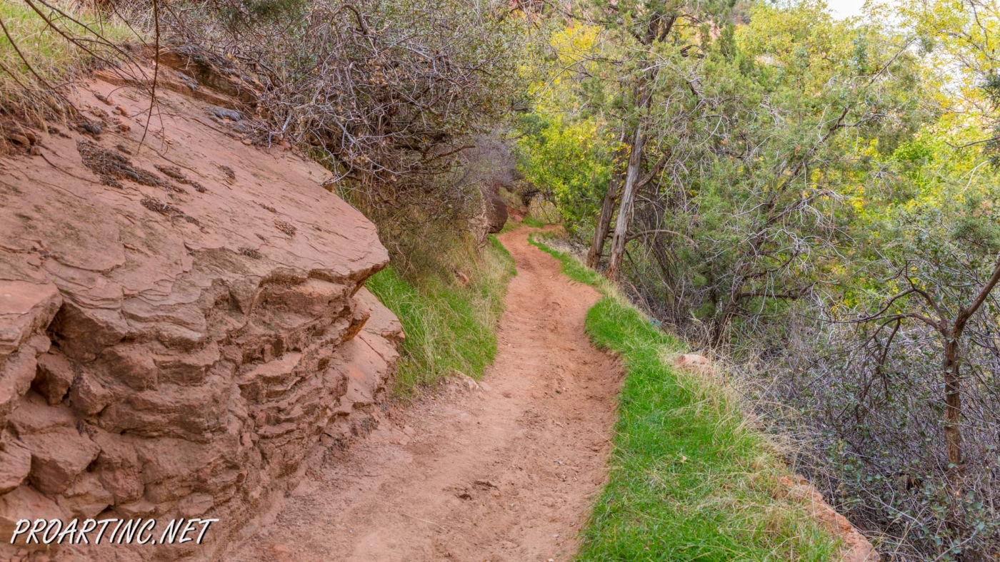 If you are visiting Zion National Park during the season when the shuttle bus is not available, you can drive to Zion Lodge and from there take the Emerald Pools Trail and follow it until it joins the Sand Bench Horse Trail.