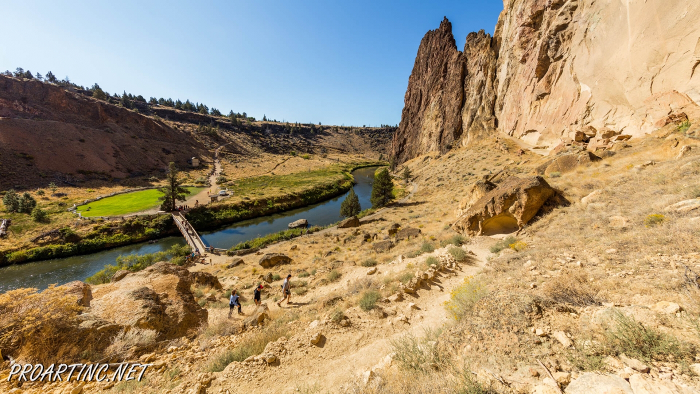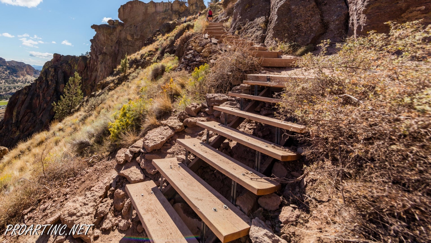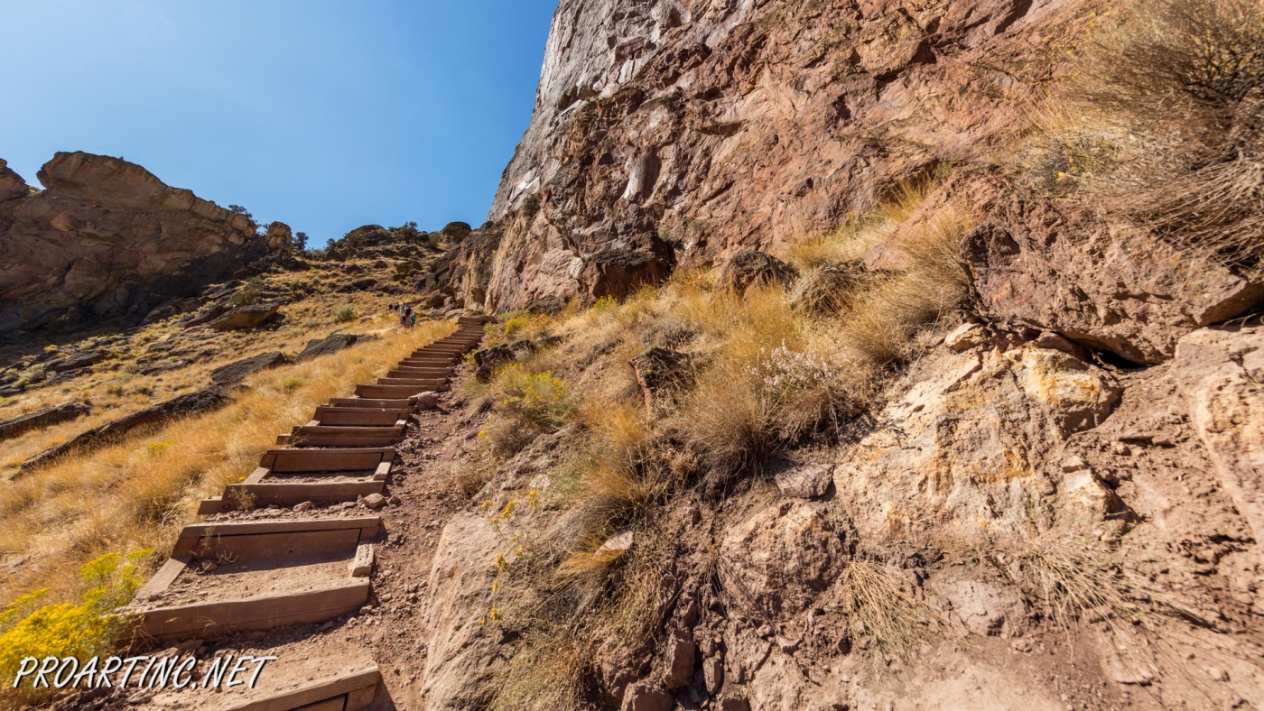 The trail starts directly after crossing the Crooked River Bridge, near the bridge end you will see a sign, marking the trailhead. Be prepared for a real challenge, as ahead is the elevation of 600 feet which you’ll gain within the next 0.68 miles. Not as easy and effortless as it may appear if you take into account that almost the whole trail is open to the sun throughout the day.