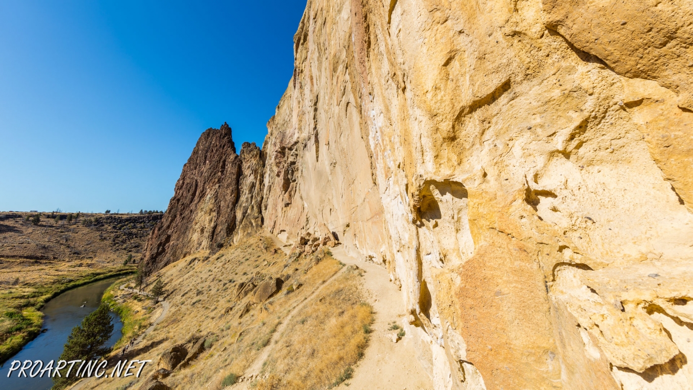 Once you get to the very top of the ridge, the misery you may feel during the ascent will give place to the whole-hearted astonishment and amazement as the views which open there are incredible. Catch your breath and take delight in viewing the Crooked River, meandering beneath the ridge. Enjoy the sweeping views of all the main peaks of Oregon’s Cascades, among which are Mount Hood, Mount Bachelor, Mount Jefferson, Broken Top and Three Sisters. And of course you will obtain an opportunity to behold priceless vistas of Monkey Face – one of probably most well-known icons of this state park.