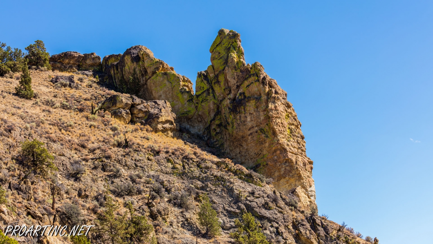 In less than a mile you will get to the junction with quite a short side-trail, which will take you to an amazing vantage point. The breathtaking view which it opens for the visitors is just priceless. On your left you will see the well-known Monument Area, and turning right you will have a glimpse of the Monkey Face – the landmark and visiting card of the Smith Rock State Park.