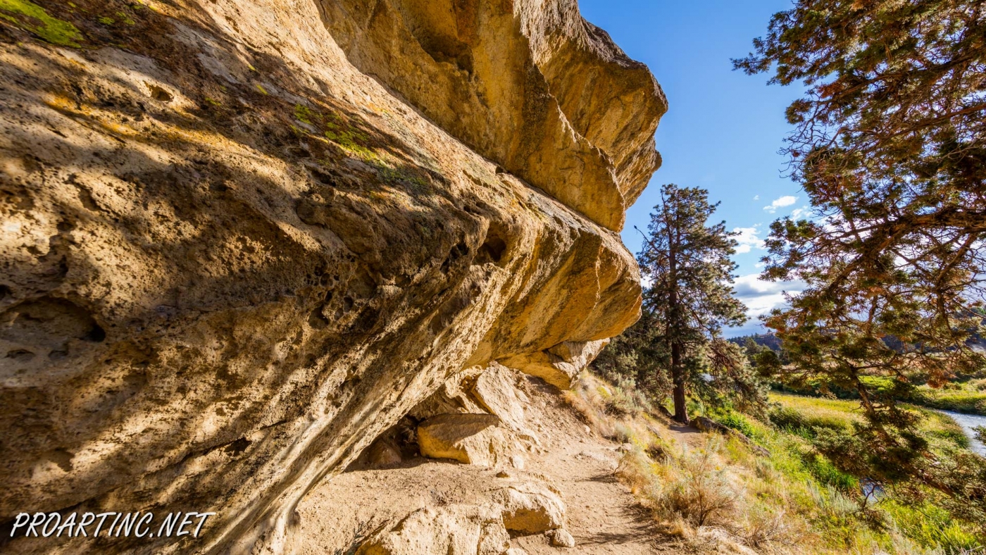 To find to the River Trail from the parking you need to go down to the Crooked River by The Chute trail, which is quite steep, or by the Canyon Trail, which is longer, but more level and smooth. After crossing the wooden footbridge across the river you should take the left turn to start the River Trail (if you turn right you’ll find the Wolf Tree Trail, and going strait is the Misery Ridge Trail).